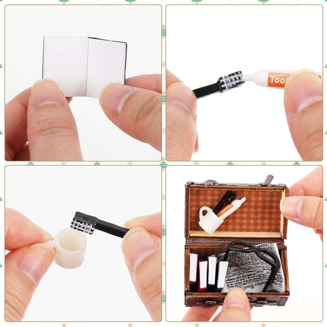 1/12 Dollhouse Accessories, 10 Pieces Miniatures Travel Accessories, Iconographie Books for Dollhouse, Mini Toothbrush and Toothpaste, Mémoires, Iconographie Elf Accessories