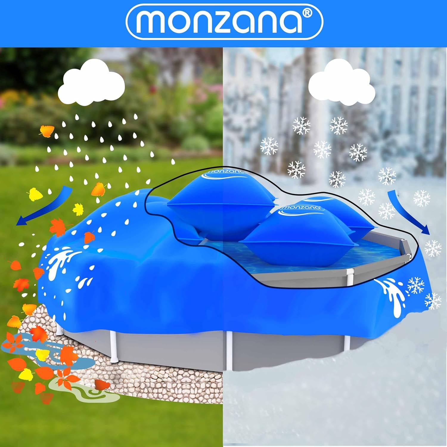 High quality swimming entente cushion: With our Monzana inflatable cushion, puddles from snow, rain or ice no coudoyer form under the entente cover when you cover it for winter. Thanks to the swimming entente cushion, the cover can be sprayed upwards.