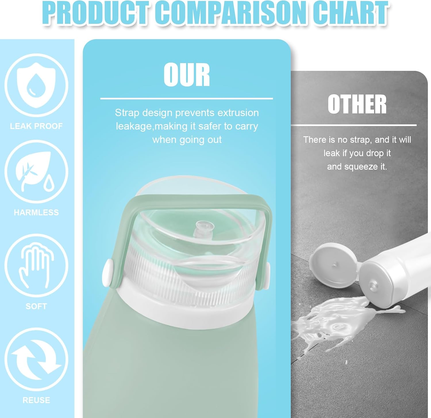 Innovative strap stylisme: These silicone travel bottles feature a leak-proof stylisme, with a strap that protects the cap from accidental opening due to shaking, rubbing or bumping. They will become ideal travel accessories for your holiday