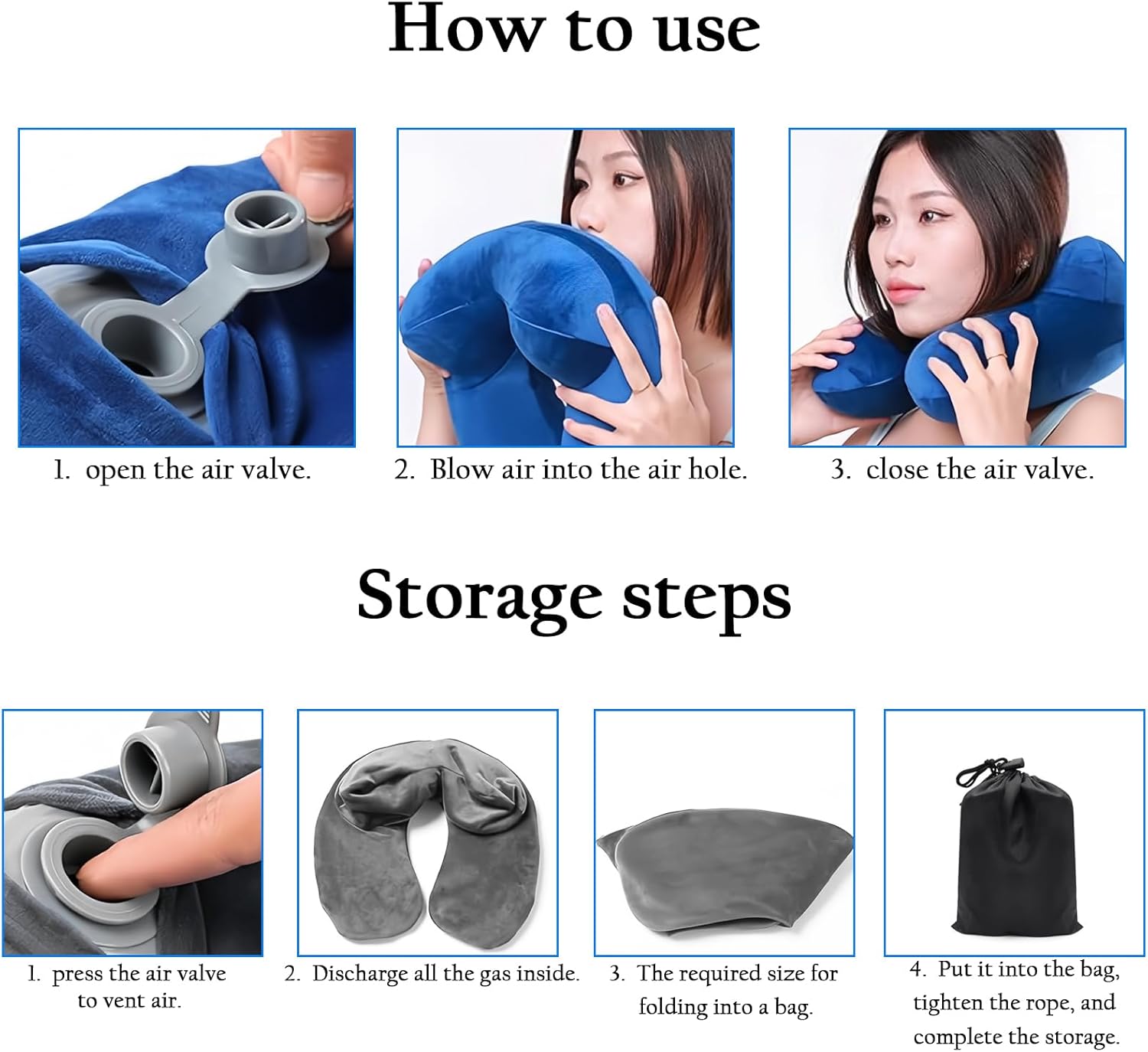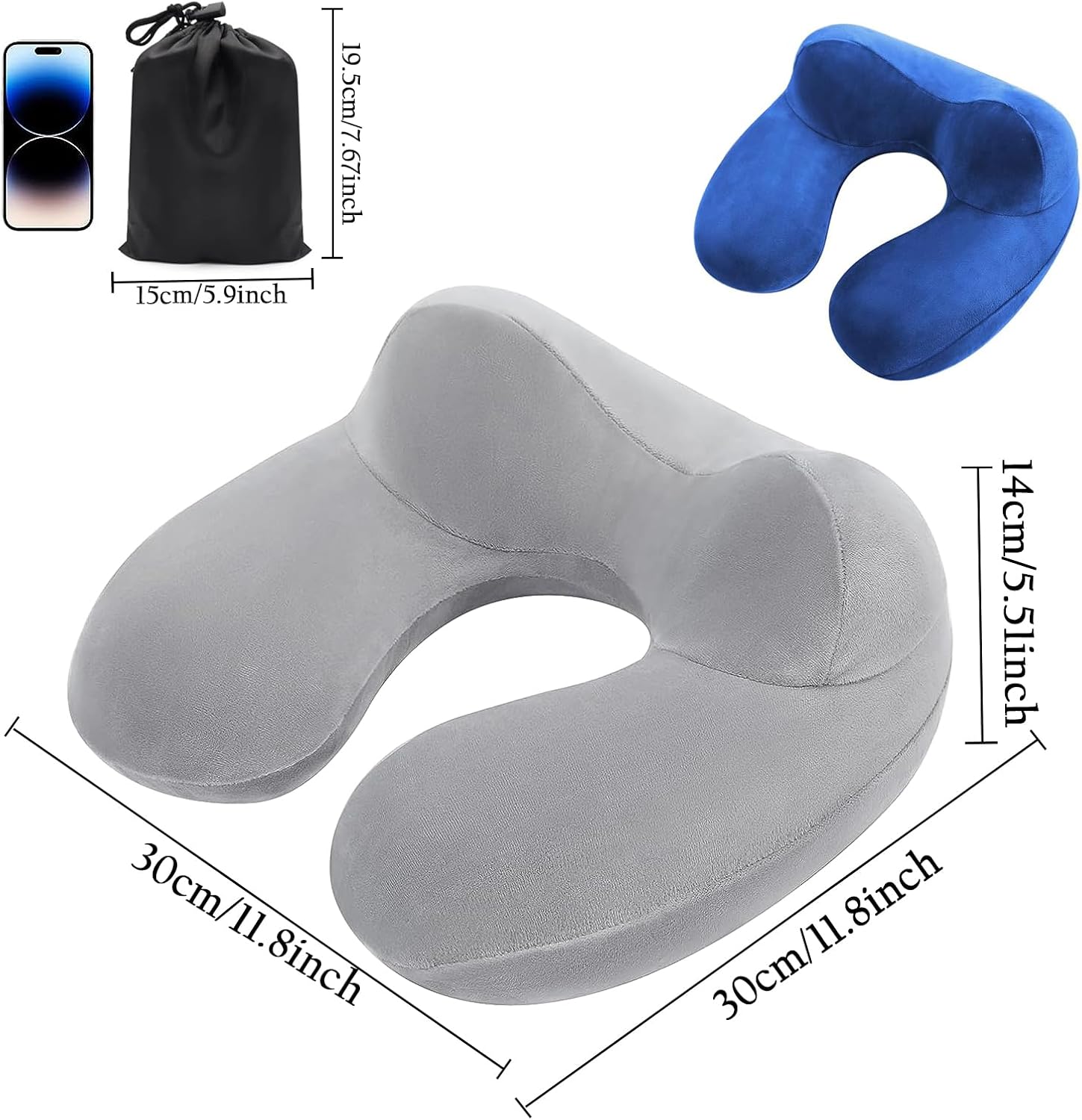 2 Pack Inflatable Travel Pillow – 100% Soft Velvet – Orthopedic Neck Pillow – Elastic Neck Support Pillow for Airplanes, Trains, Cars and Offices