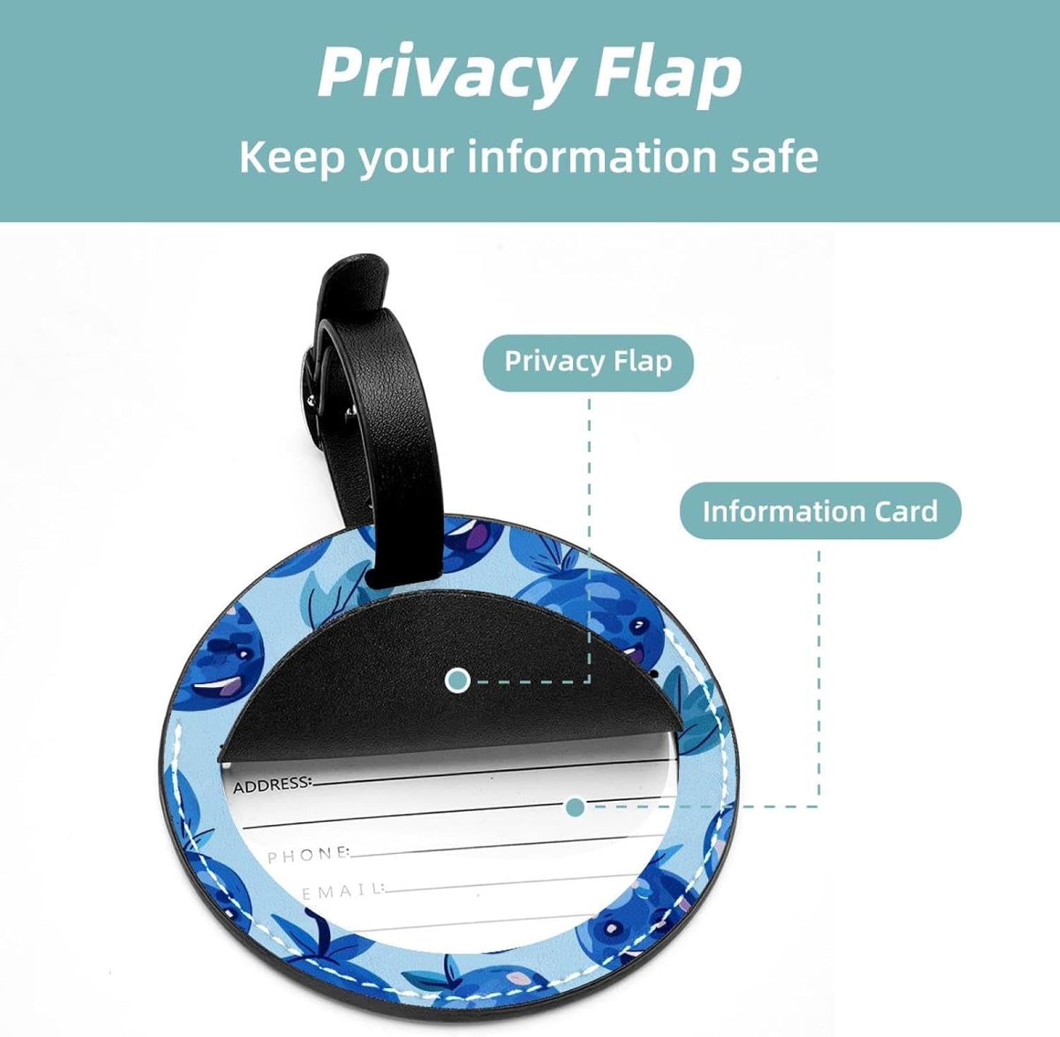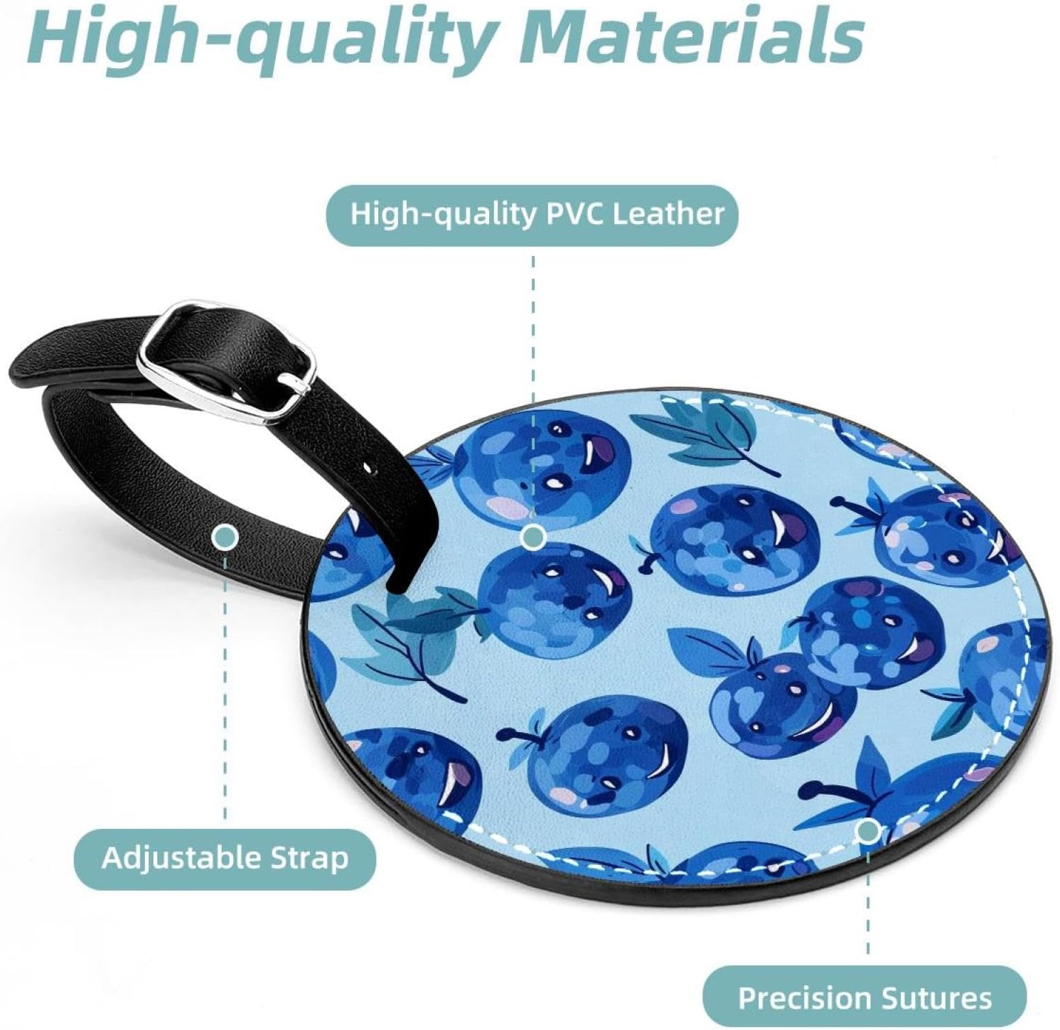 2 Pack Luggage Tags Travel Luggage Tags Women Men Kids PU Leather Luggage Tags Happy Blueberry Luggage Tags