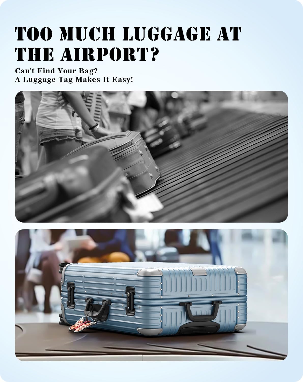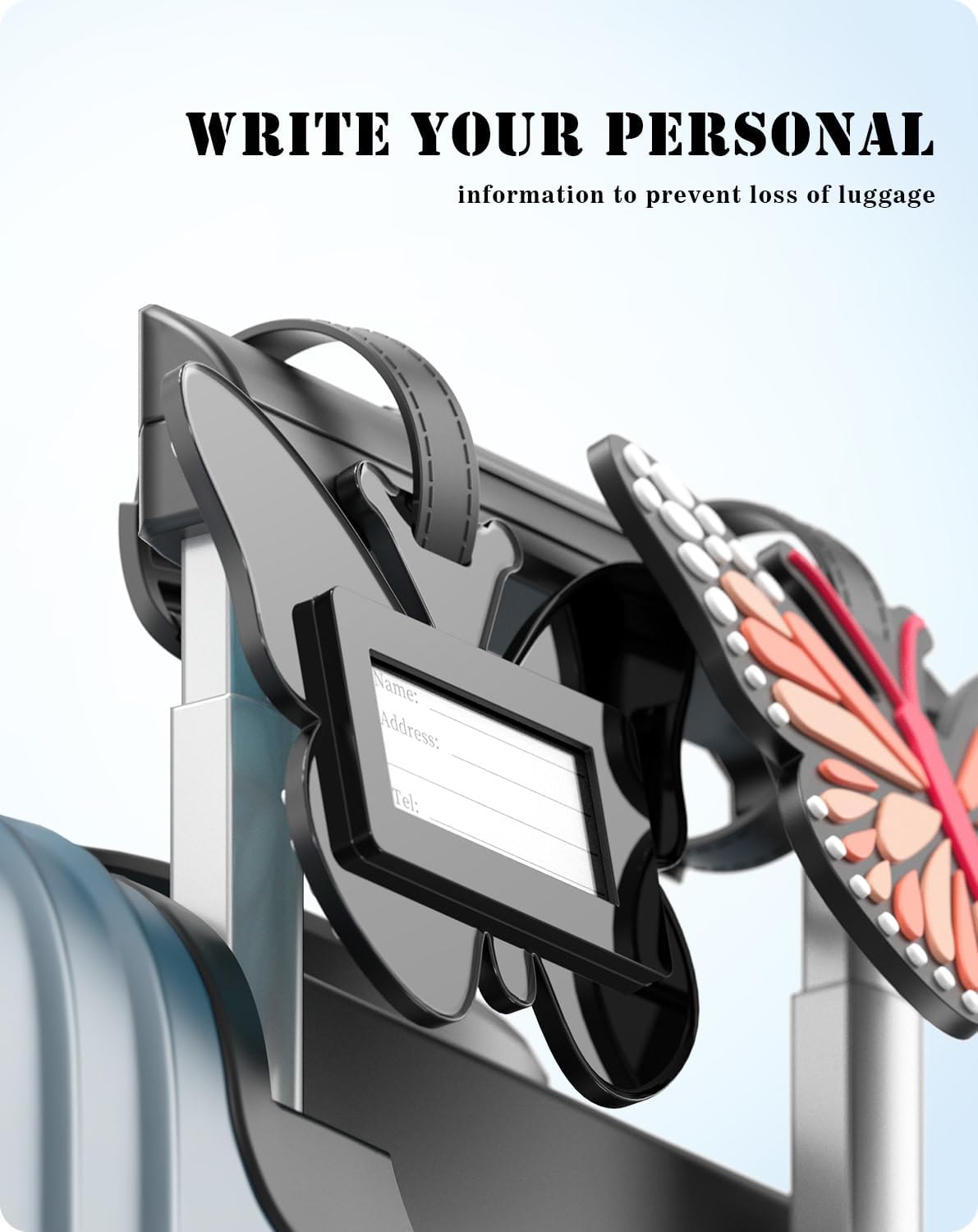 CREATIVE & COLORFUL – Make your luggage shine in airport greyness with our blue and bergamote butterfly suitcase tags. These entier luggage tags add a touch of joy and dynamism to your travels, while making it easy to identify your suitcase to save time on arrival.