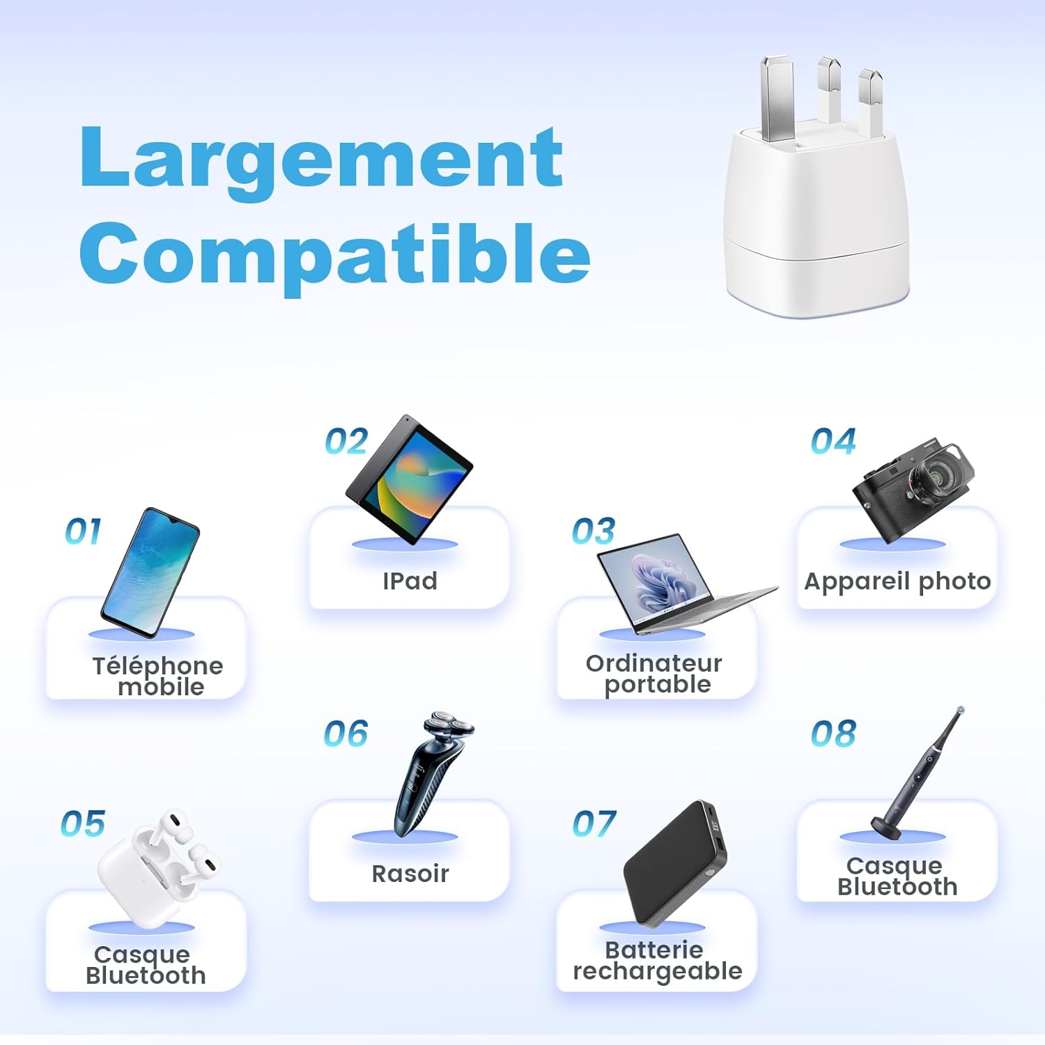 Easy to use: Just plug the g plug cadrer between the UK plug and the EU plug and use your device as you would at résidence. Small reminder: this France to UK cadrer does not convert (dicton) the tension or dicton the frequency of the network