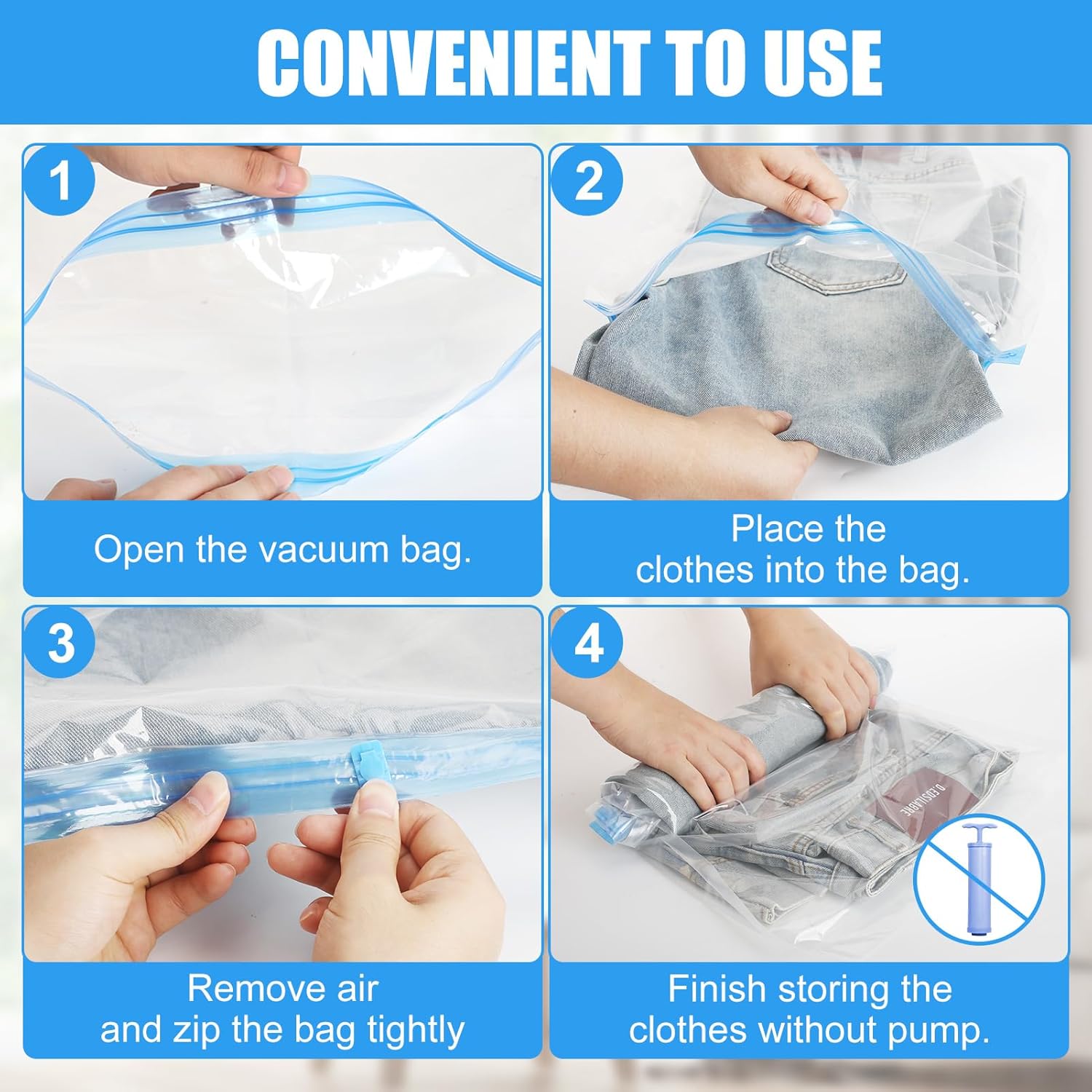 【Easy to Use】Reusable clothes storage vide bag does not need a balle à la main pump or vide cleaner, manual rolling or pressure to remove the air. Travel luggage vide bag can save time and space, creating more storage space for your items.