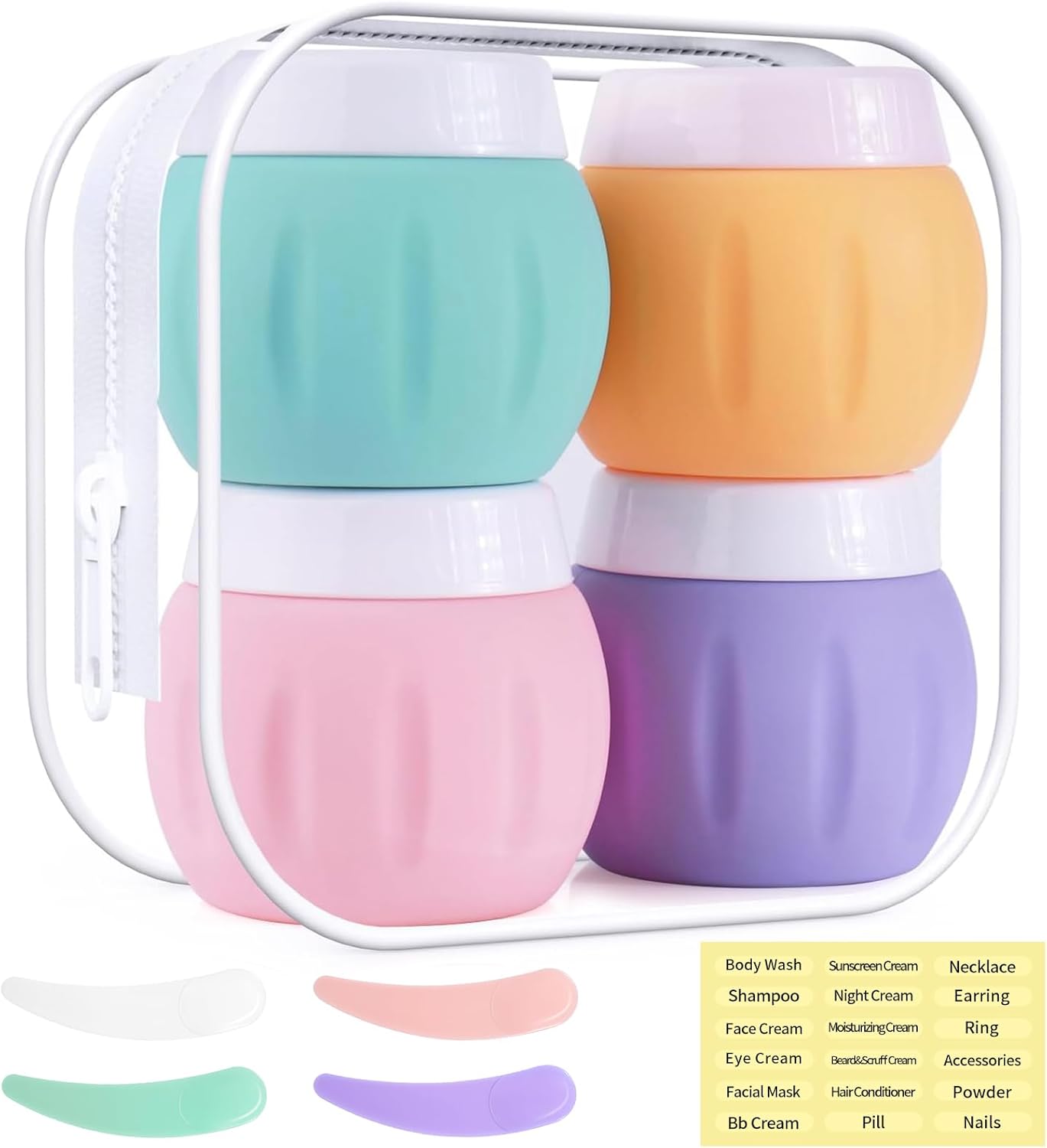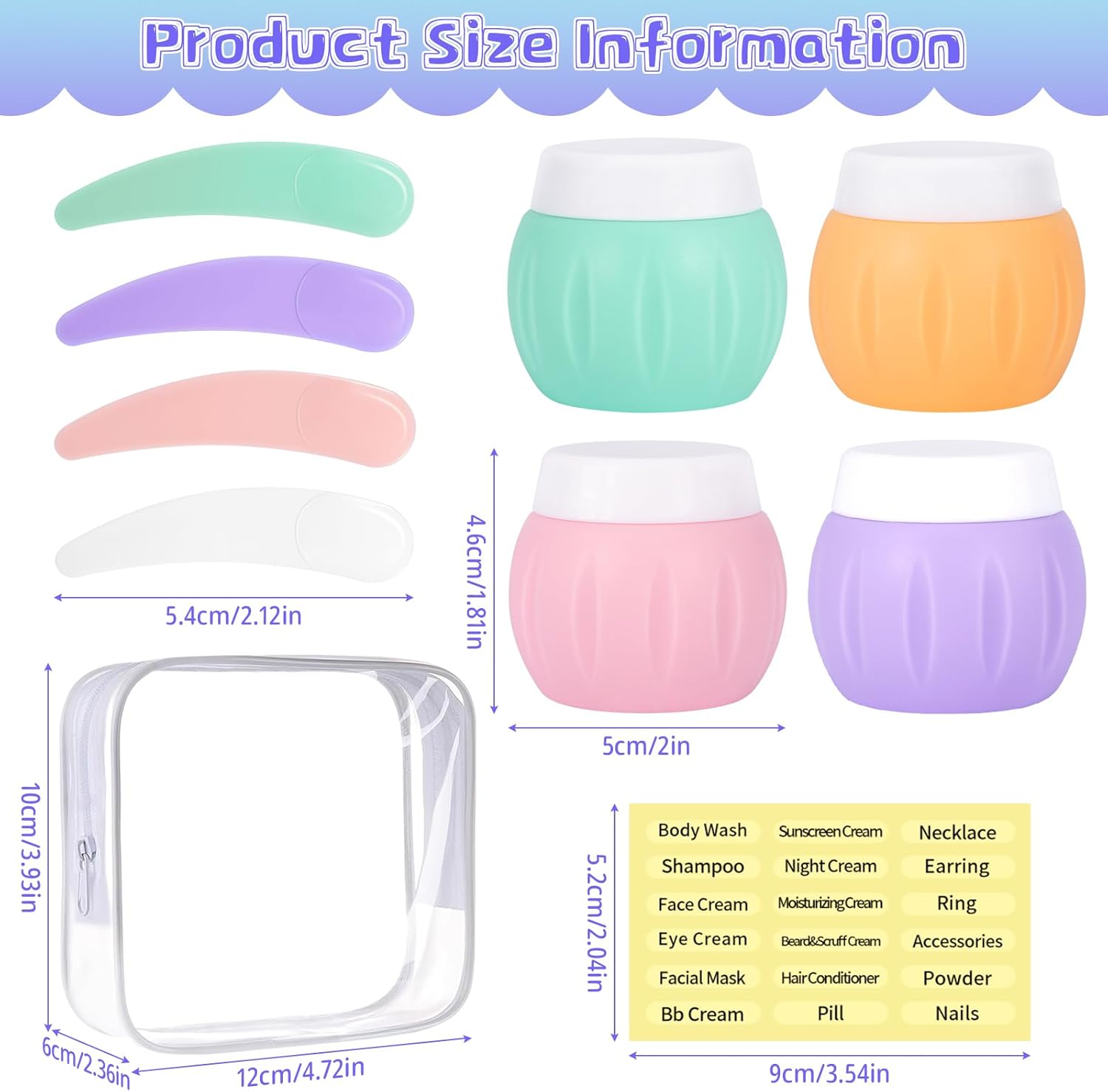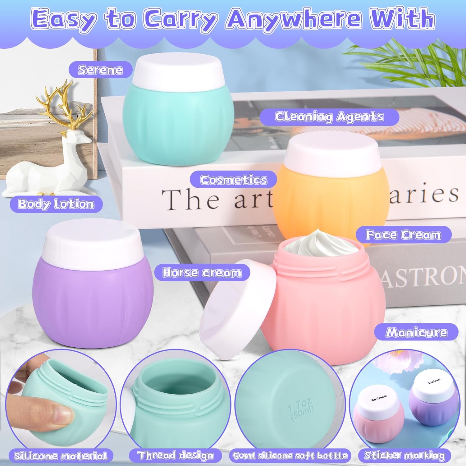 Product mémoire: Product name: Macaroon Cream. Material: silicone. Colour: Macaroon colour system (powder/pink, navel, blue, purple). Adéquat scenarios: travel, gymnique, camping, the beach Scope of tentative: shower gel, laundry detergent, cream, tonique and other cosmetics and toiletries, as well as accessories such as earrings, necklaces, rings, etc. Conditionnement: 4 x cream canad 50 ml, 4 x spoons. 1 x sticker. Our cream cans are very small and convenient, easy to carry, greatly reducing the space of the backpack you travel. – Use high-quality silicone material, which is not easy to damage and is easy to clean. – The earth seal makes it less likely to leak and will not twist your luggage. – It is a must-have choice for travel, gymnique and camping.
