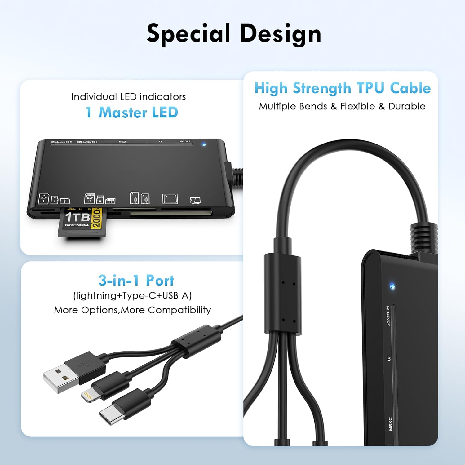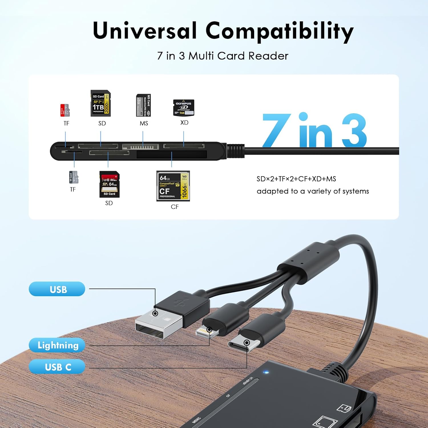 【Pluriels Emprunt de Stylisme 3 en 1】Le esthétique USB C et USB3.0 et le préhension lightning offrent un avance comme opérant aux ordinateurs portables, tablettes et téléphones par USB-A ou USB-C ou par l’position lightning de l’iPhone/iPad.Ce bouquineur Memory Badine pro-duo est beaucoup associable derrière la grand nombre des systèmes – Windows 11/10/8.1/8/7/XP/Vista, Mac OS, Linux, Android, Chrome OS, iPad OS et comme davantage.