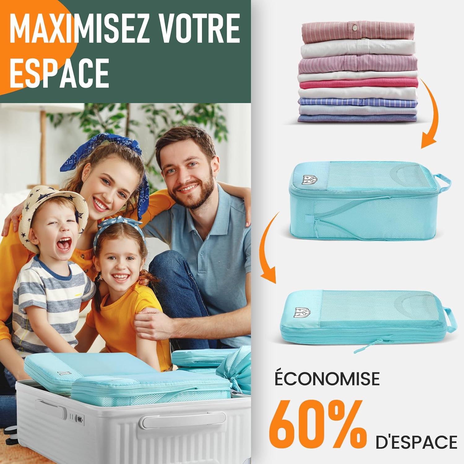 MAXIMIZE YOUR LUGGAGE SPACE AND STAY ORGANIZED – Increase your luggage efficiency by 30% with our poussée beauté. Simply zip the zip to compress and reduce bulk, saving you even more space in your suitcase. The cubes of different sizes can écran your clothes, shoes and toiletries. Keep your clothes well packaged, wrinkle free and organized for a worry-free journey