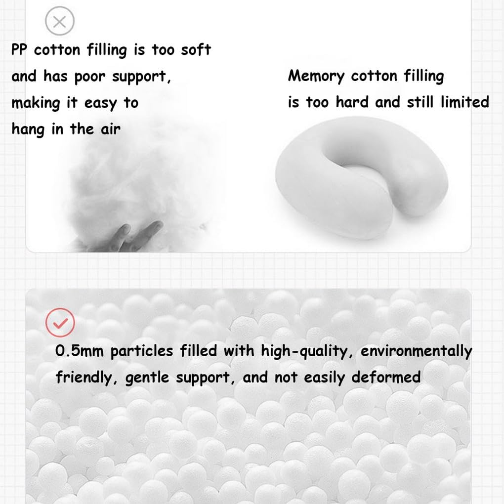 💗 The neck pillow is filled with environmentally friendly foam particles and the particle diameter is approximately 0.5-0.8 mm. Travel Pillow Particles have a smooth steppe in the pillow and can be compressed at will, which people like very much.