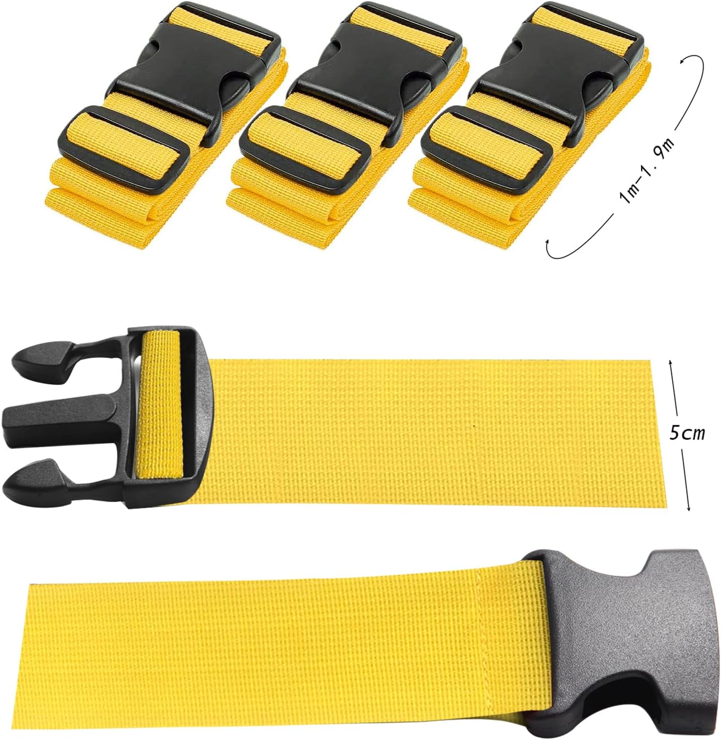 【Easy to adjust and use】: The length of the packing belts can be adjusted to 120-200 cm, width: 2 inches/5 cm, which will fit suitcases, backpacks or travel bags from 16 to 32 inches. Easy to use, with quick release buckles for easy attachment/defect