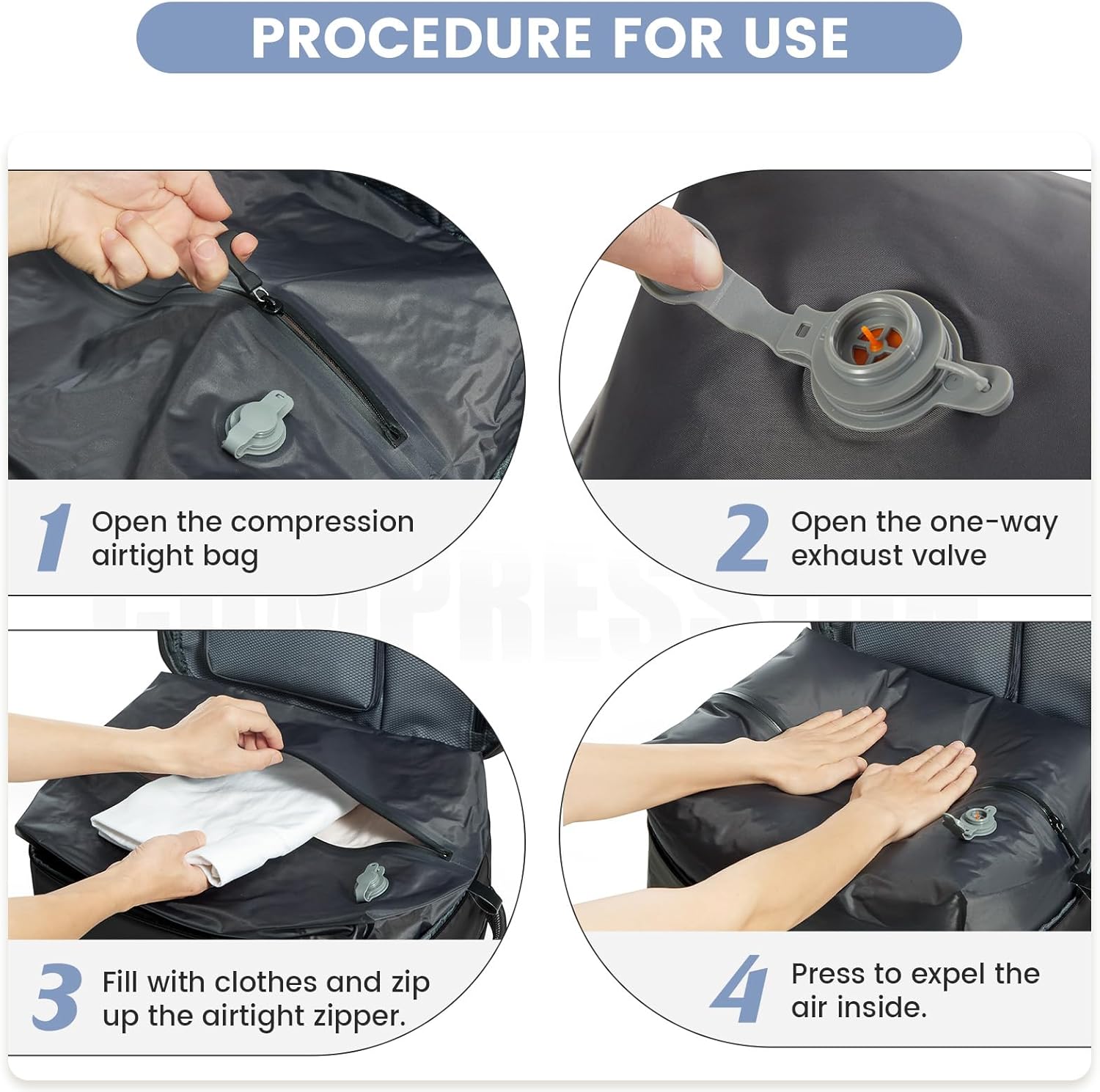 Ultra-fast vide tassement: Thanks to the built-in electric pump, up to 80% of the air can be removed in just 30 seconds – or manually by dégraissage. This saves valuable luggage space and maximises storage capacity – ideal for carry-on travel.