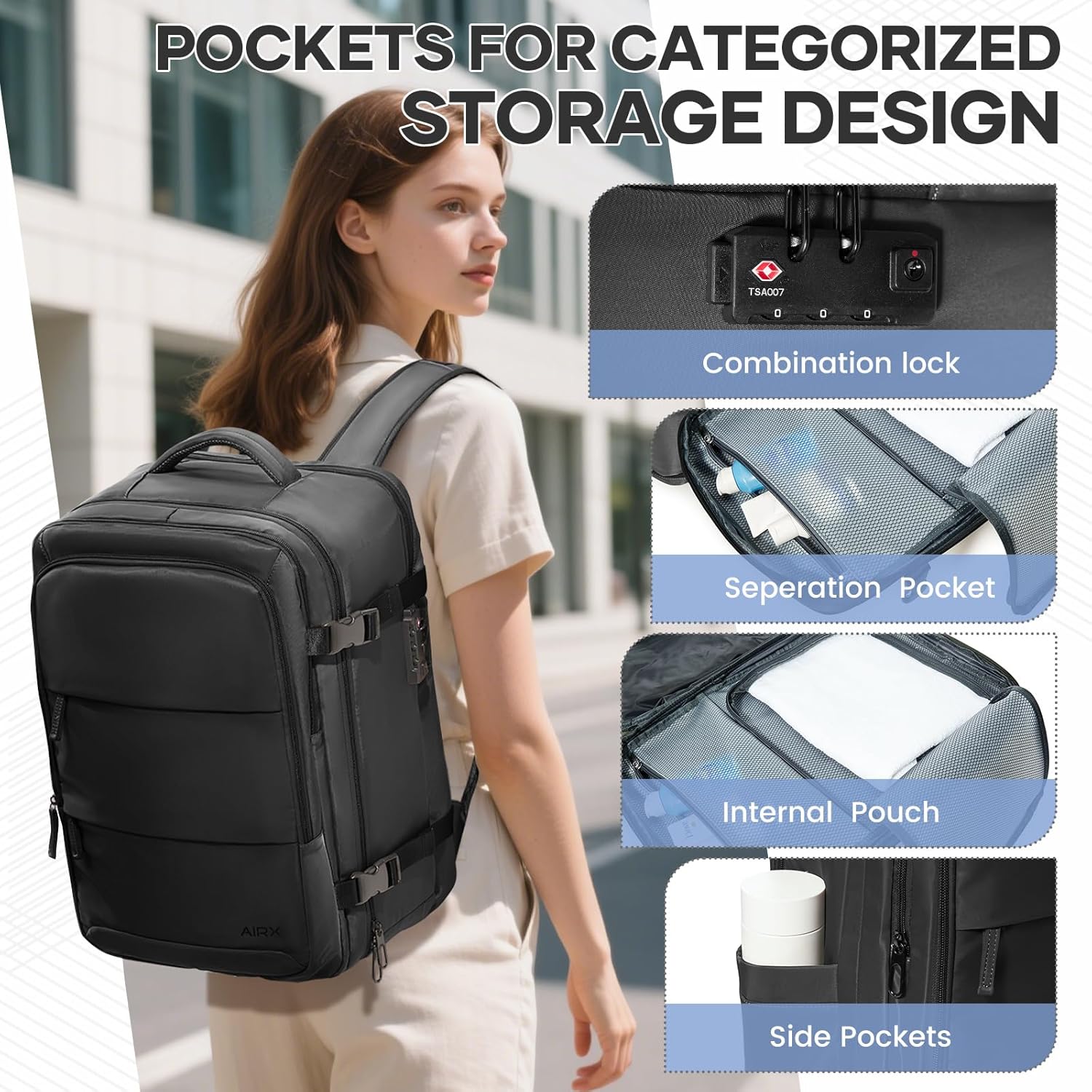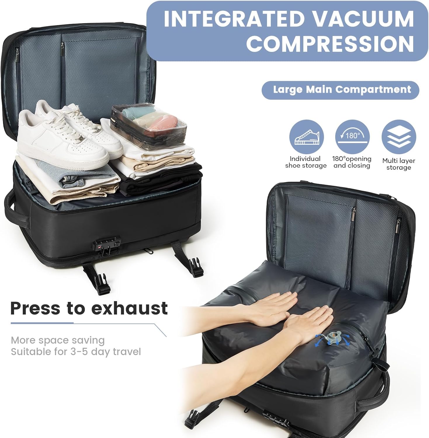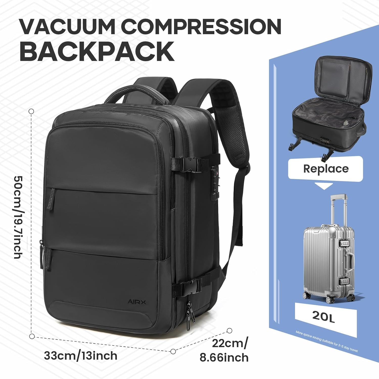 Travel Vide Backpack with Pump, Vide Diminution Coussin autogonflant with USB Charging Relâche, Travel Cabin Airplane Backpack