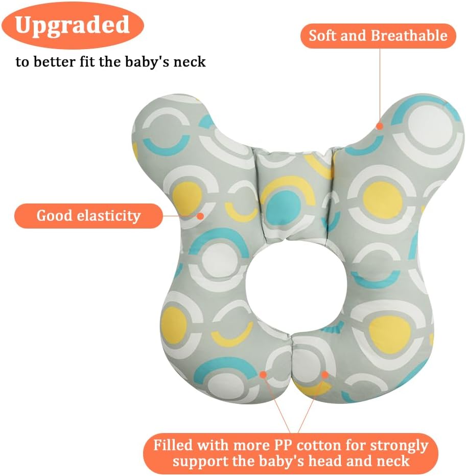 Alaoo Baby Travel Pillow, Head and Neck Support Pillow for Travel, Baby Sleeping Pillows for Baby Support for Car Seat Stroller Seat, Circle Pattern
