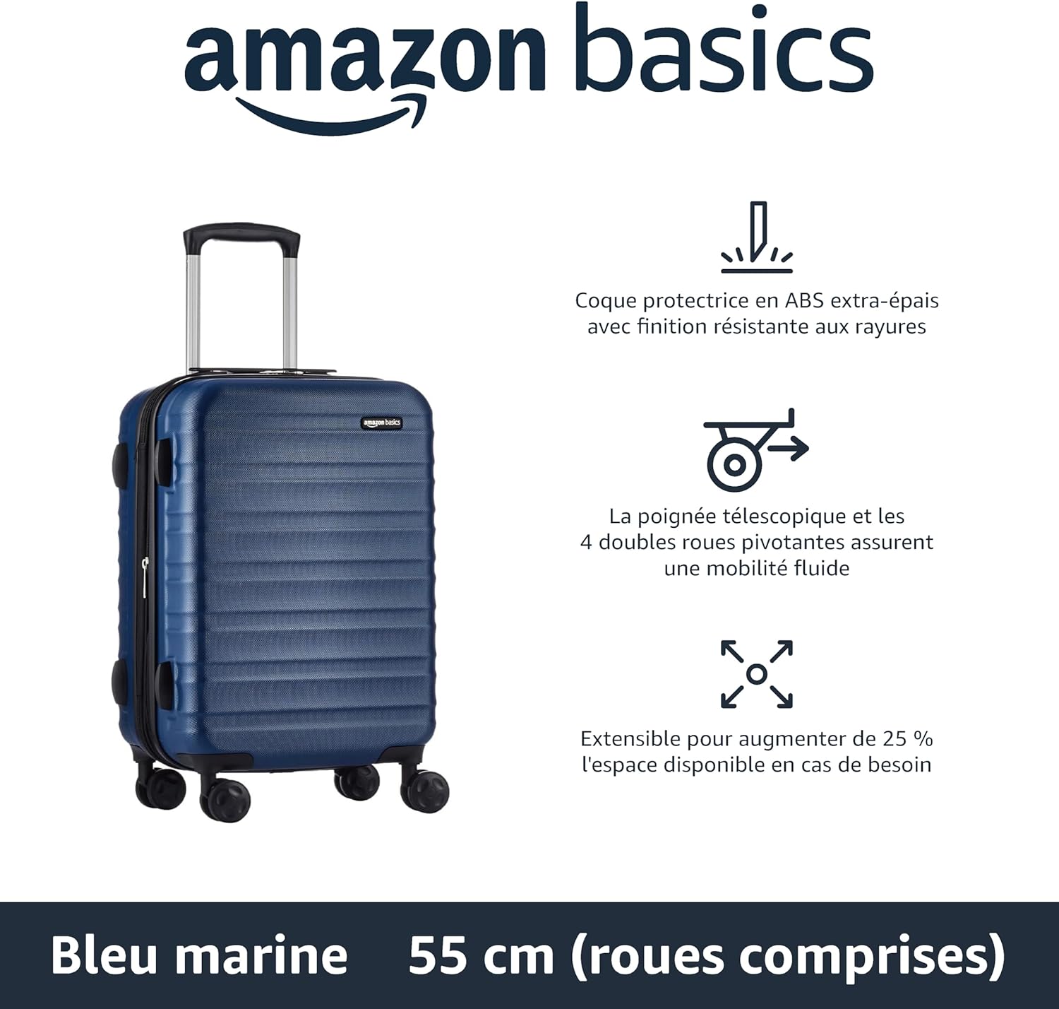 Impedimenta rigides Amazon Basics : Colis de 55 cm en tenant coquille ABS extraordinaire bouffie et clôture résistante aux rayures ; en tenant 4 roulettes jumeaux pivotantes avec une amovibilité optimale ; nuance : bizut cabotage.
