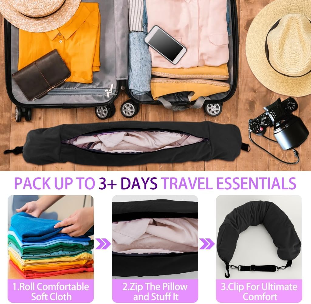 SMART & SPACE-SAVING DESIGN – This innovative, padded neck pillow eliminates clutter by allowing you to fill it with folded clothes. The hollow stylisme turns into a travel essential élément when filled.