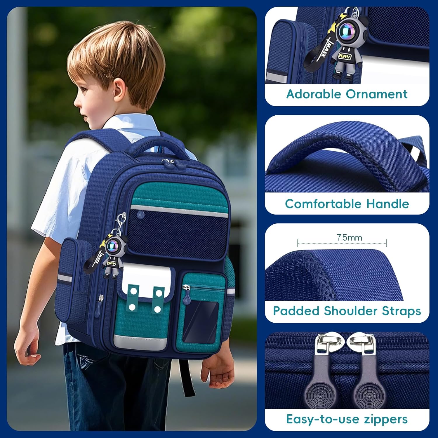 Practical Backpack for Boys, Multi-Compartment Backpack with Cute Charms