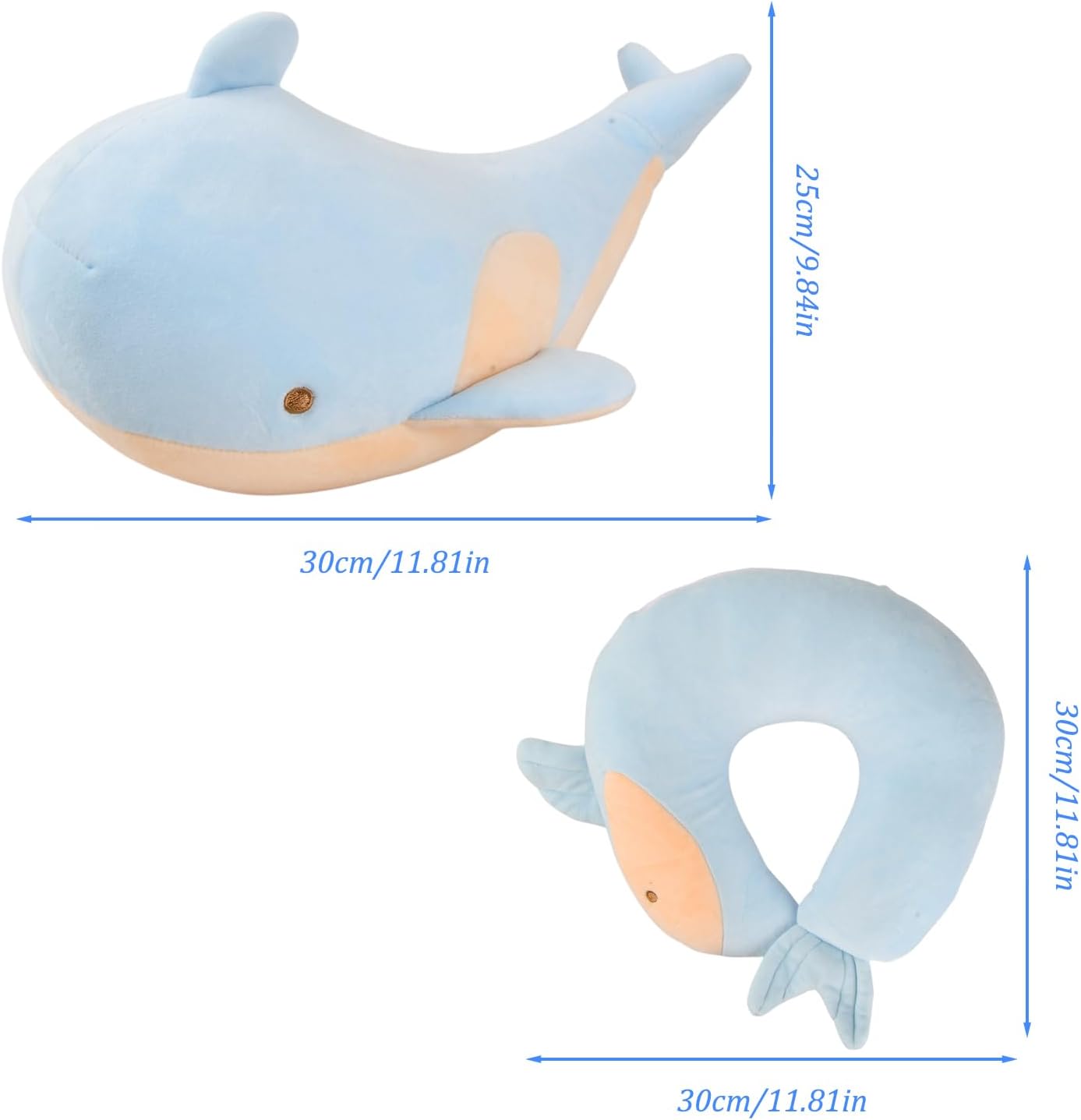 Anseom Oreiller de Voyage 2 en 1 pour Enfants, Oreiller en Forme de U Pratique Déformable Portable Doux, Confortable Soutien pour la Tête et Le Cou Oreiller de Voyage Enfant (Baleine)