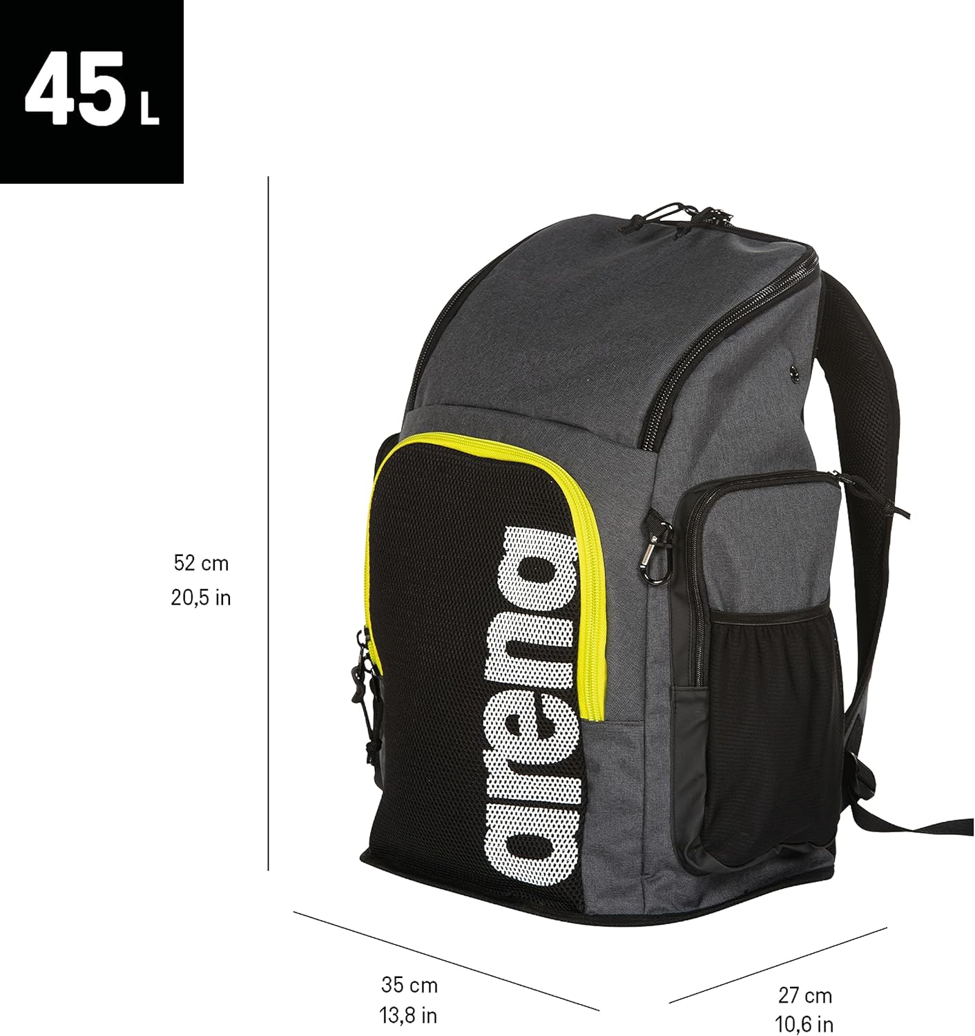 SAC À DOS POUR NAGEURS : Le vaste havresac de ludisme arena Team 45L est positif saisi contre les nageurs, en même temps que de nombreuses poches et un arrière renforcé qui protège le domestique même sur des surfaces mouillées