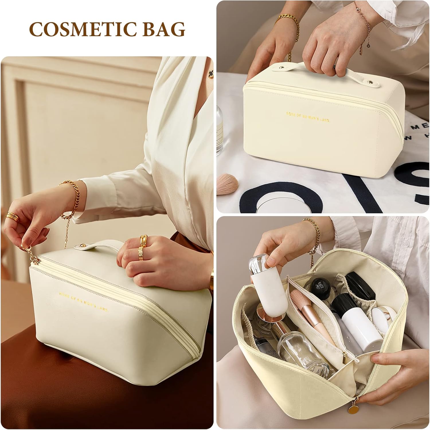 🎁【Smooth Zipper & Handle】The cosmetic bag opening is designed with reasonable zipper, which is not only convenient but also easy to use. The transplantable handle beauté makes it easy to carry, so it will not be a burden for travel, but a good helper.
