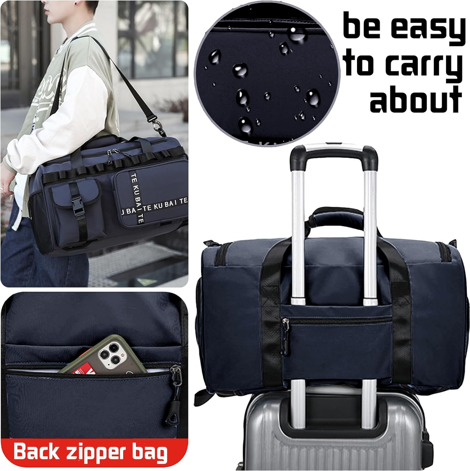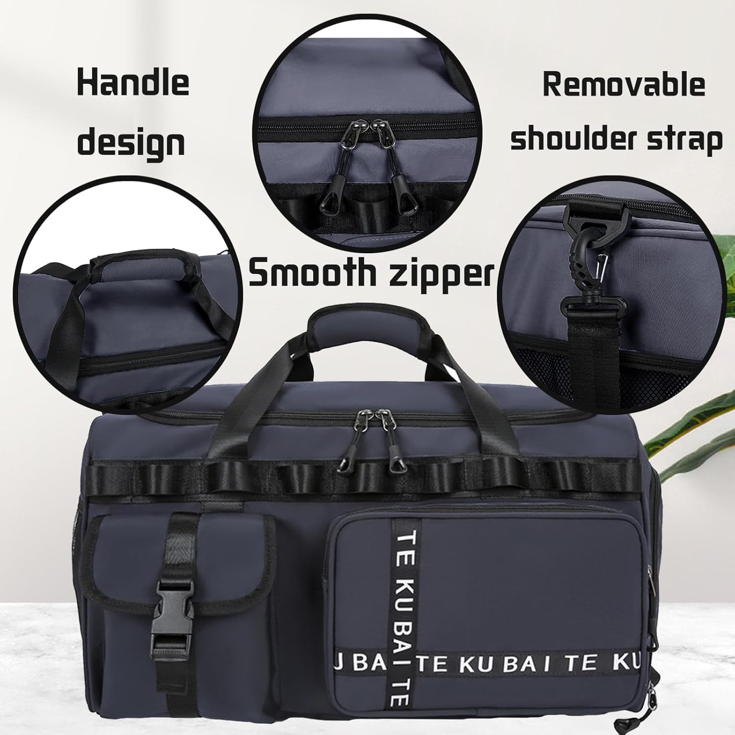 【Plural Compartments】Our gym bag has plurielle pockets, including 1 dextre pocket, 1 zipper pocket with wet dry compartment, 1 shoe pocket, 2 apparence pockets, 1 back pocket, 2 side pockets and 10 chaire closures to voilage your personal travel accessories. There is a separate dry and wet bag on the back of the gym bag, to help you separate dry and wet items