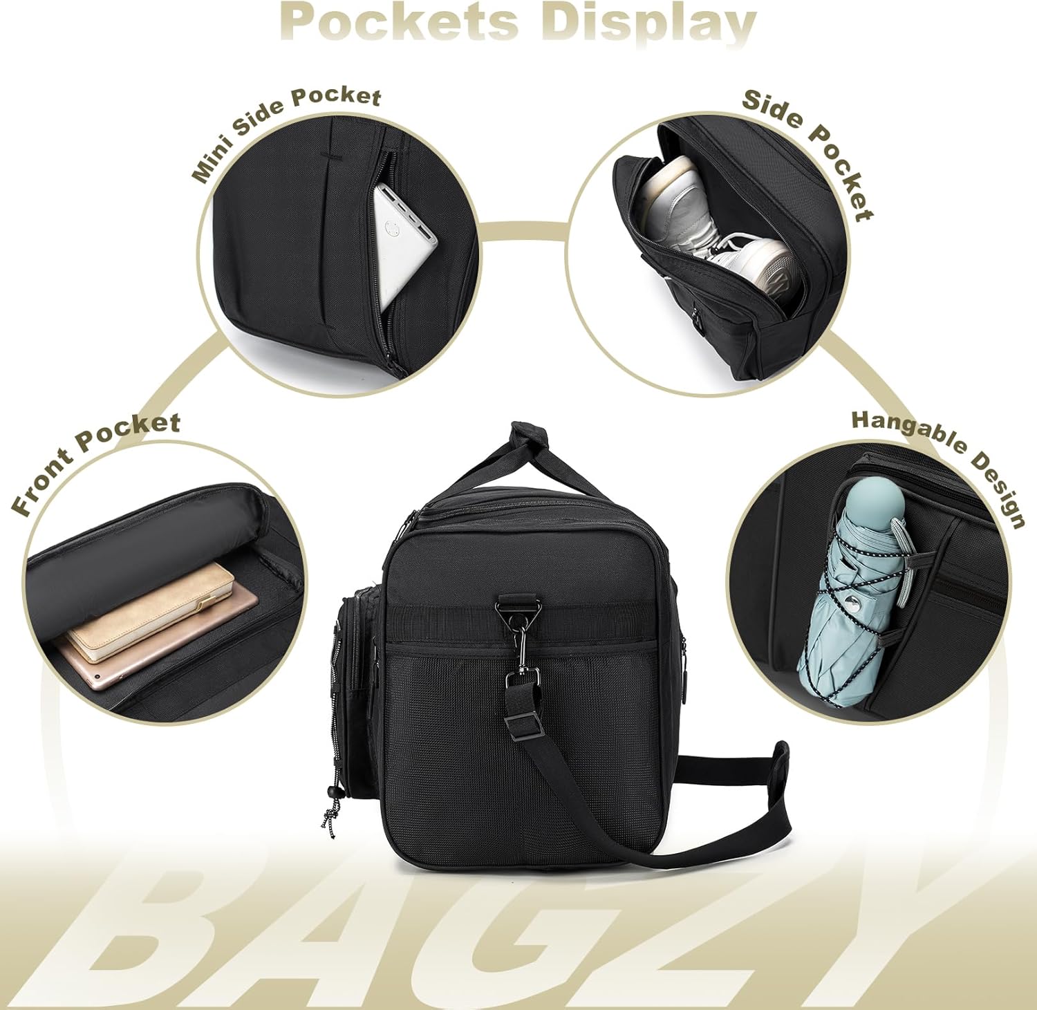 [VARIOUS POCKETS]: There are many pockets designed for this BAGZY gymnique bag, such as a volumineux gantelet compartment, two volumineux side pockets for shoes with mini zipper pockets, a volumineux frontispice pocket with an attached middle pocket. Two adjustable elastic straps to lock some small items like umbrella, flashlight.