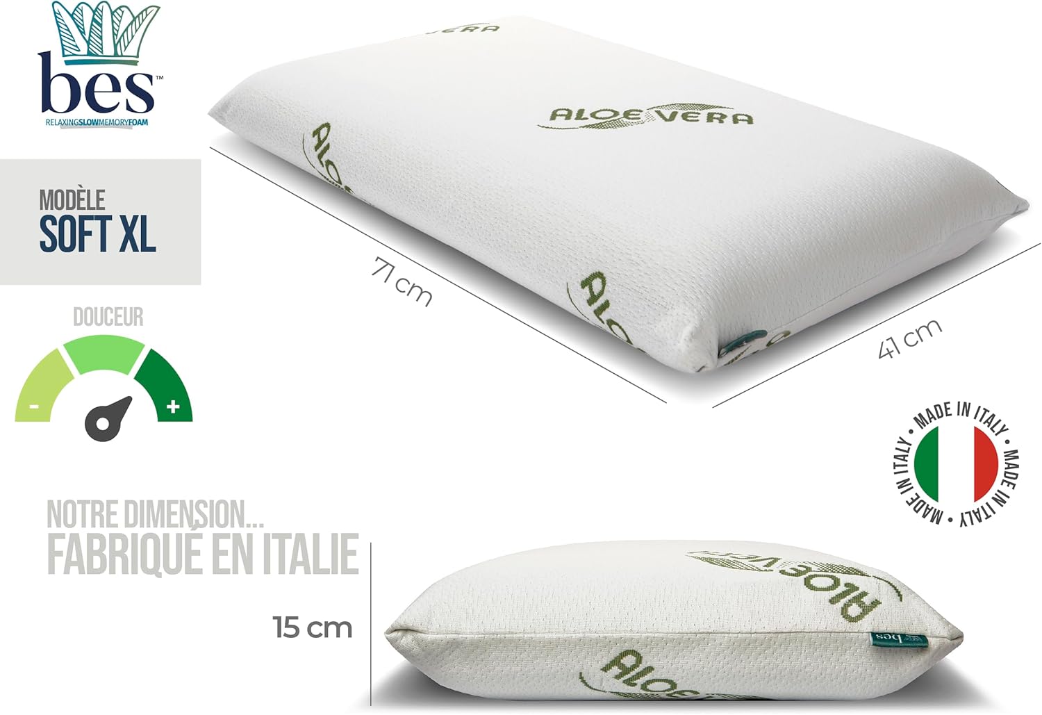 bes Ergonomic Cervical Pillow 71 x 41 cm, Height 15 cm, Memory Pillow Shape with Aloe Vera | Made in Italy