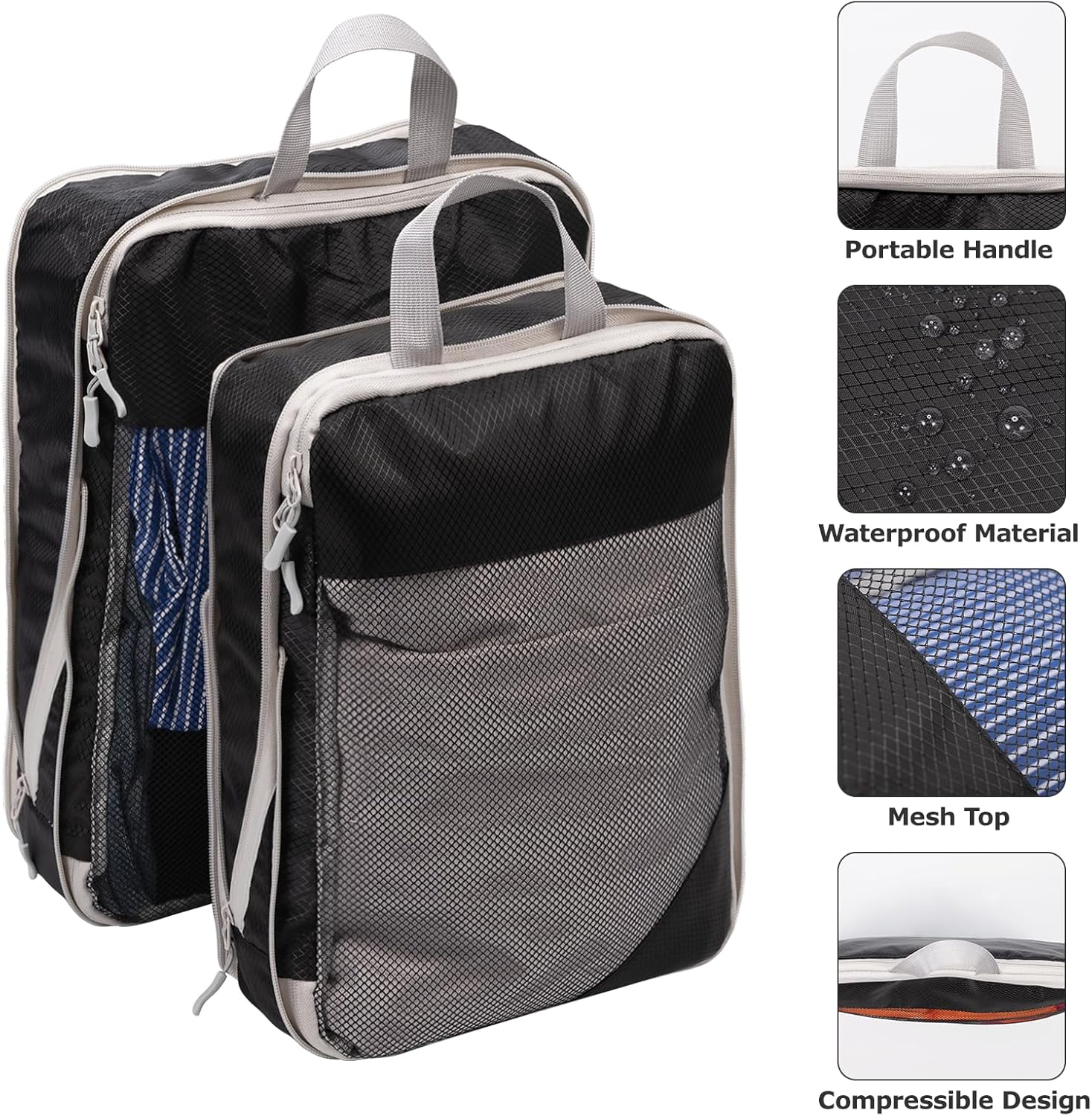 【Travel Easier & More Comfortable】Audible and breathable mesh esthétique with best visibility saves time when searching for clothes. Thanks to the sturdy handle esthétique, the travel bags are easy to carry. Additional zippers compress clothes to a maximum to save space.