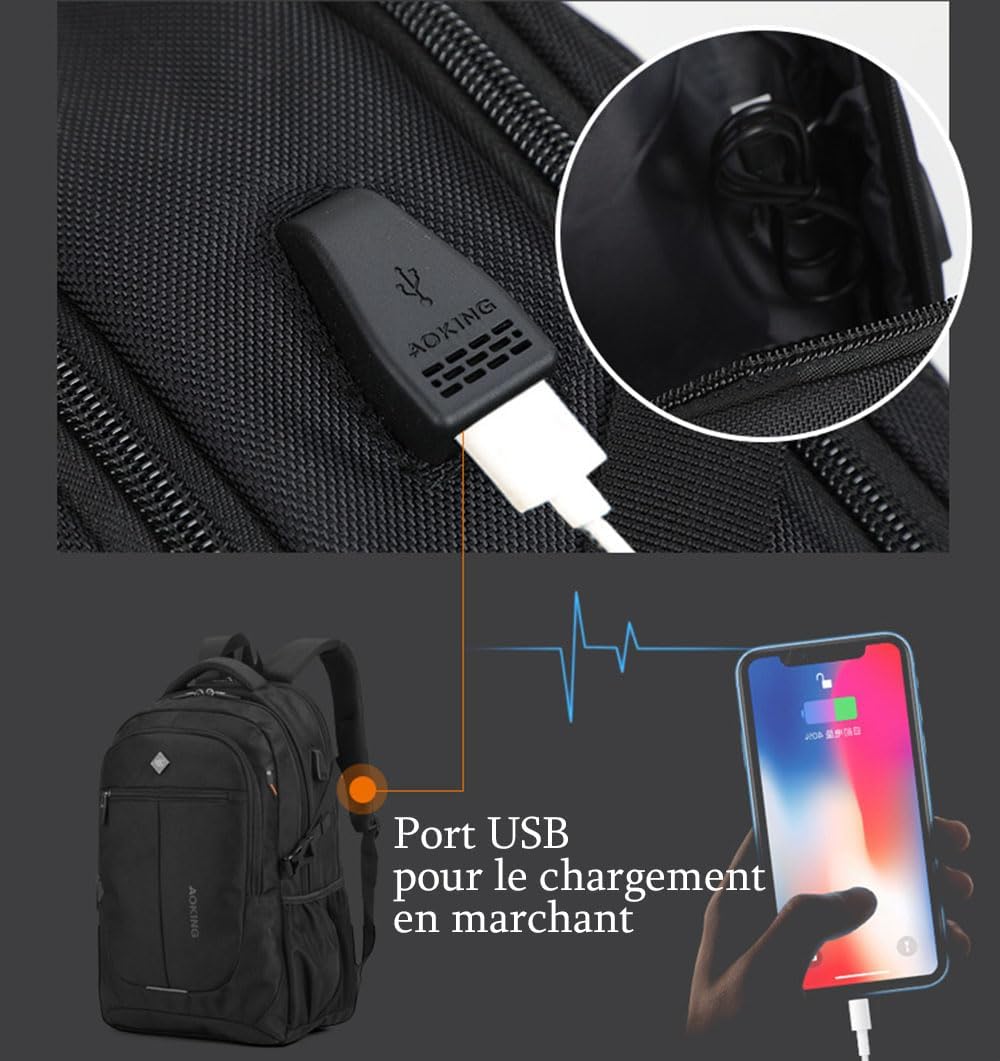 BININBOX Sac à Dos Homme 15 pouces avec Chargement USB Port pour Écouteurs Sac Dos pour Ordinateur Portable Voyage Affaires Scolaire