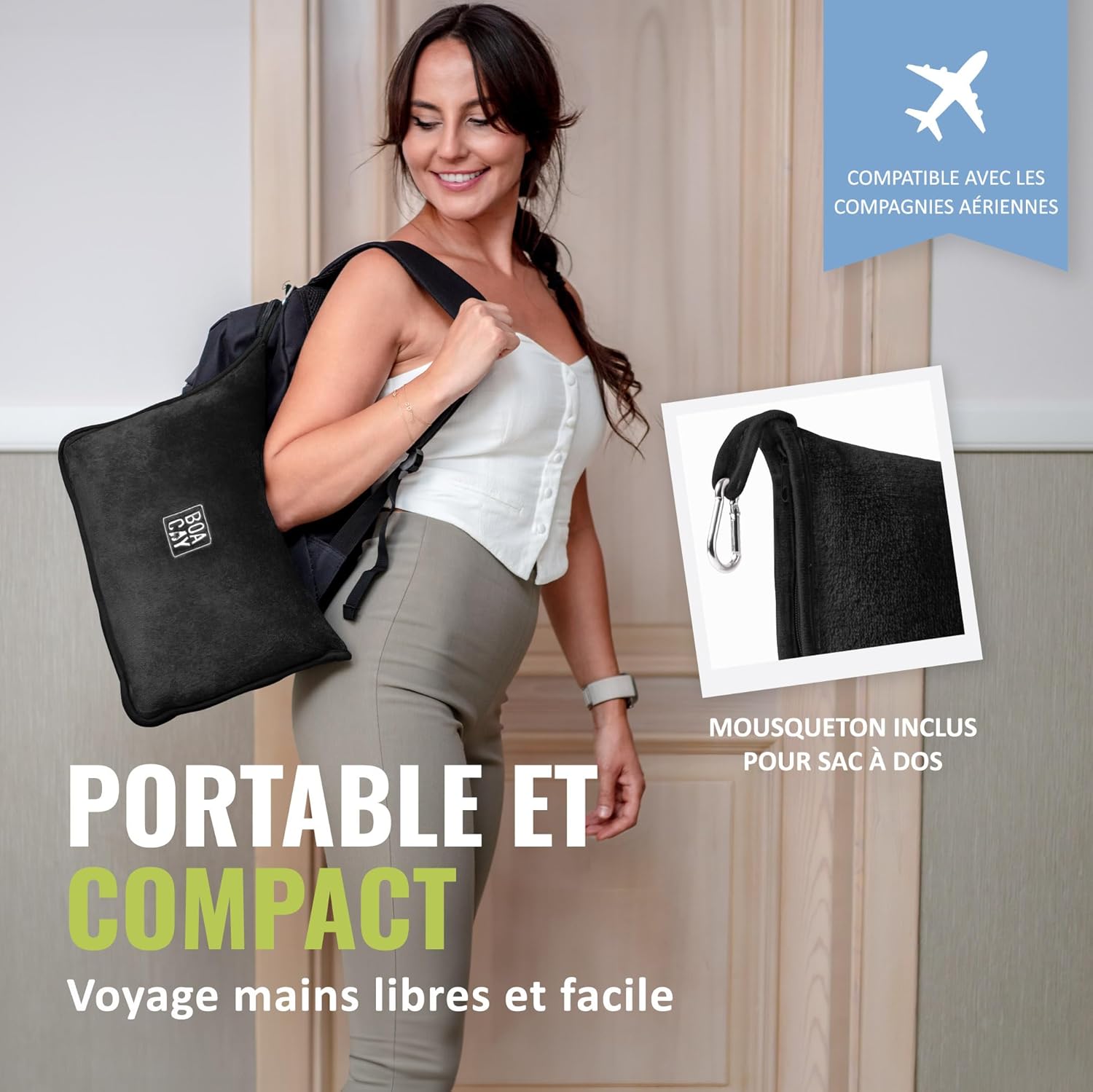SOFT AND LIGHTWEIGHT TRAVEL BLANKET: Sit well and enjoy your flight parce que we have the most fluffy airplane blanket for you. It measures 100 x 160 cm and is made of breathable micro-plush for 100% warmth.