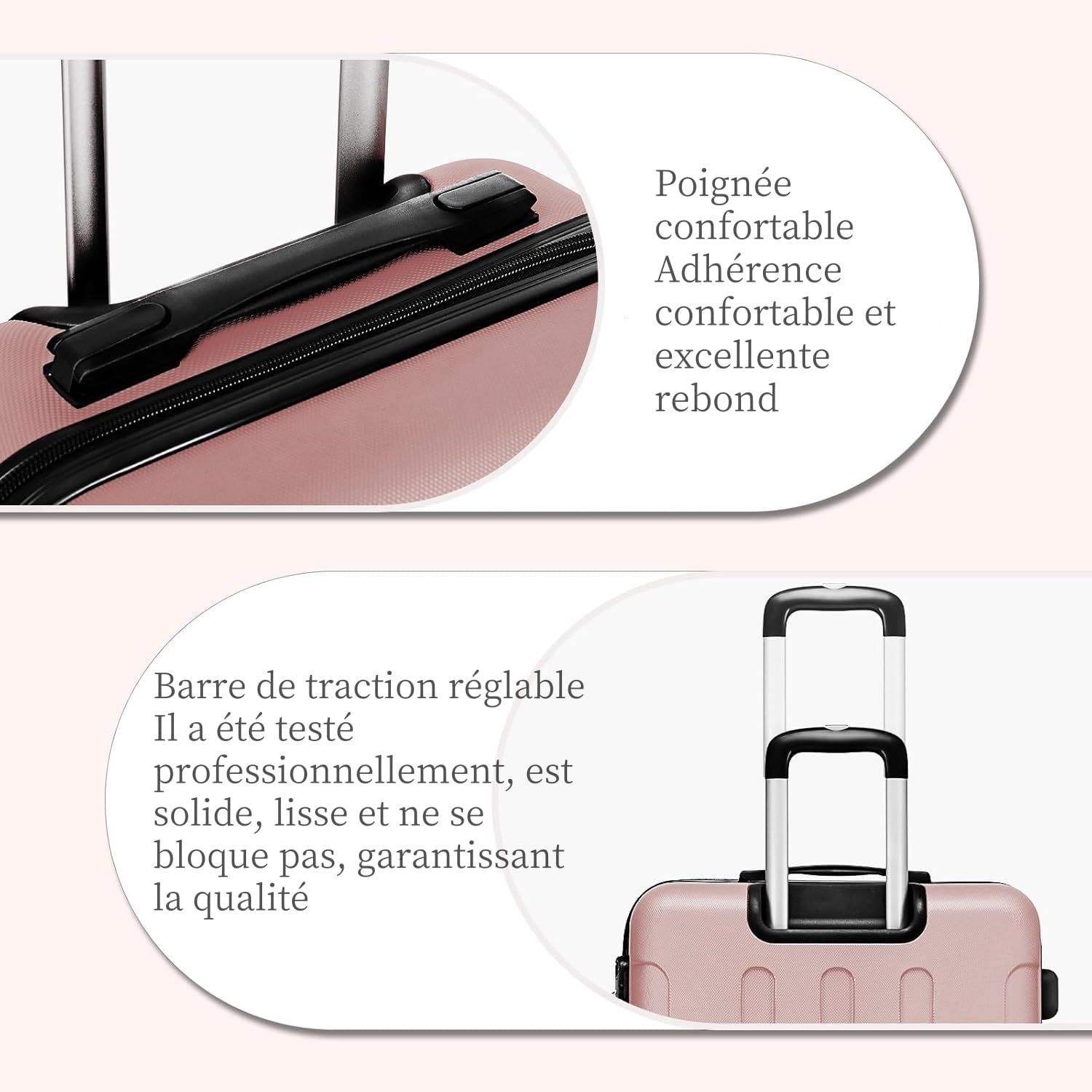Boleedy Set Valise 3 Pièces (55/66/76cm),Lot Valise Rigide ABS Grande Taille Durable,Ensemble Valise de Voyage avec 4 roulettes 360°,Sets de Bagages