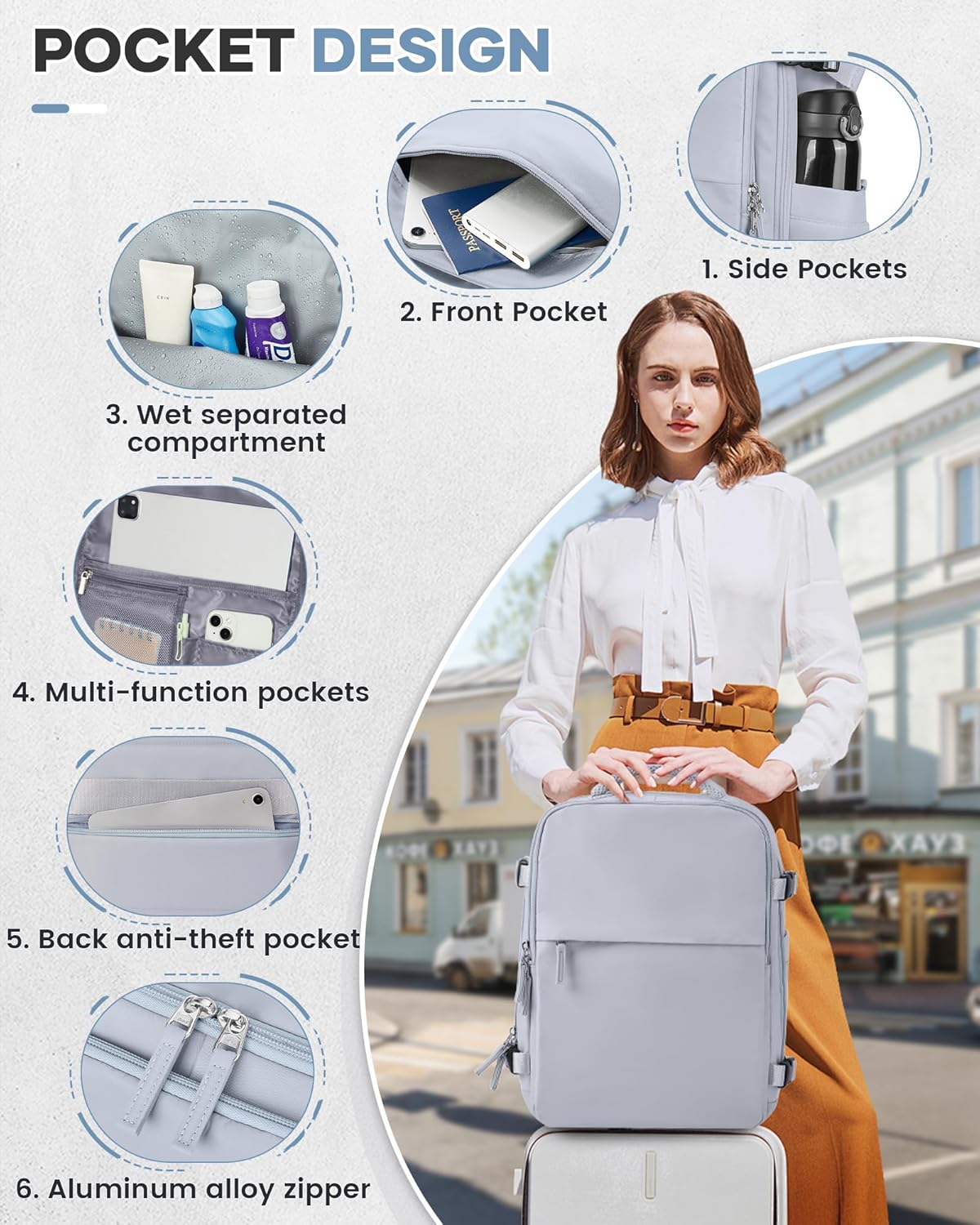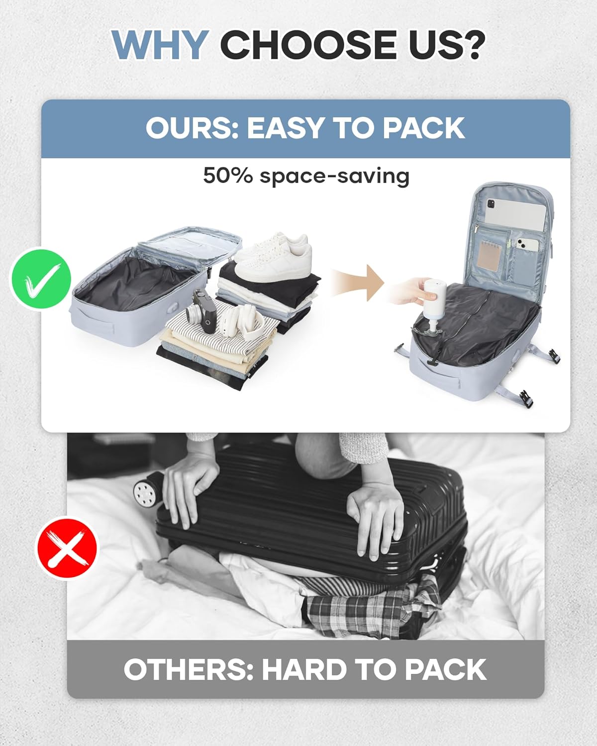 BOXSAM Compressible Travel Backpack with Electric Pump (40x20x25cm) – Compatible with Ryanair.., C-Blue, Backpack