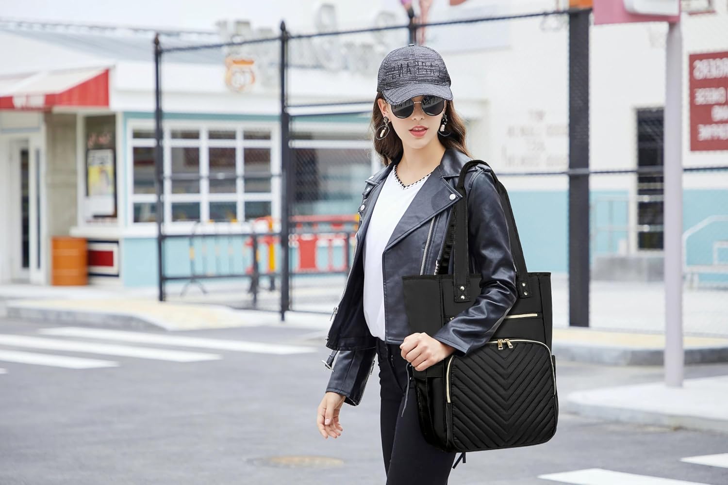 CAFELE 17 Inch Laptop Backpack, Quilted Handbag Handbag Laptop Work Bag, Cute Travel Backpack for Women