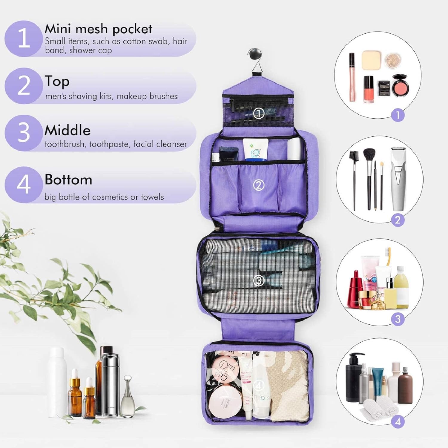 Upgraded Hook & High Quality Zipper: The stainless steel hook is more resistant to heavy bags. High quality zipper works smoothly when you open and fill the toiletry bag.We offer one year warranty for the wash bag.