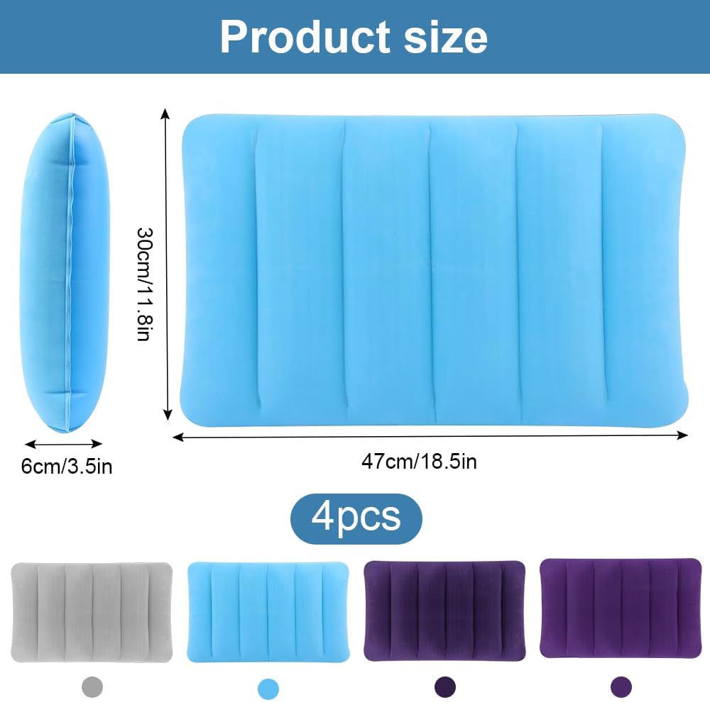 Casenly Inflatable Camping Pillow, 4 Pieces Inflatable Beach Pillow, Flocking Pillows, Portable Inflatable Beach Pillow, Inflatable Beach Pillow for Travel Hiking Outdoor