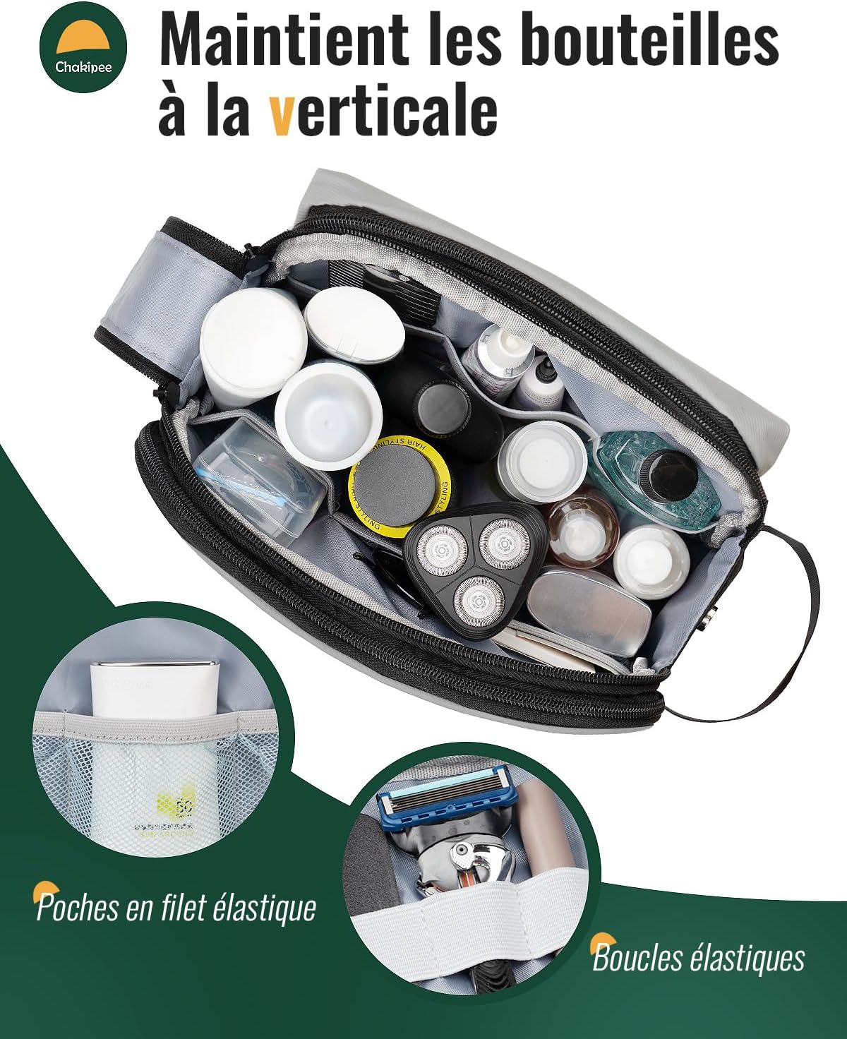 MULTIPLE COMPARTMENTS & OPTIMAL STORAGE Our travel toiletry bags is made of imperméable material. Its spacious paumelle compartment has an elastic band to hold the bottle in an upright situation. Plurielle interior pockets neatly protection all your toiletries and shaving products.