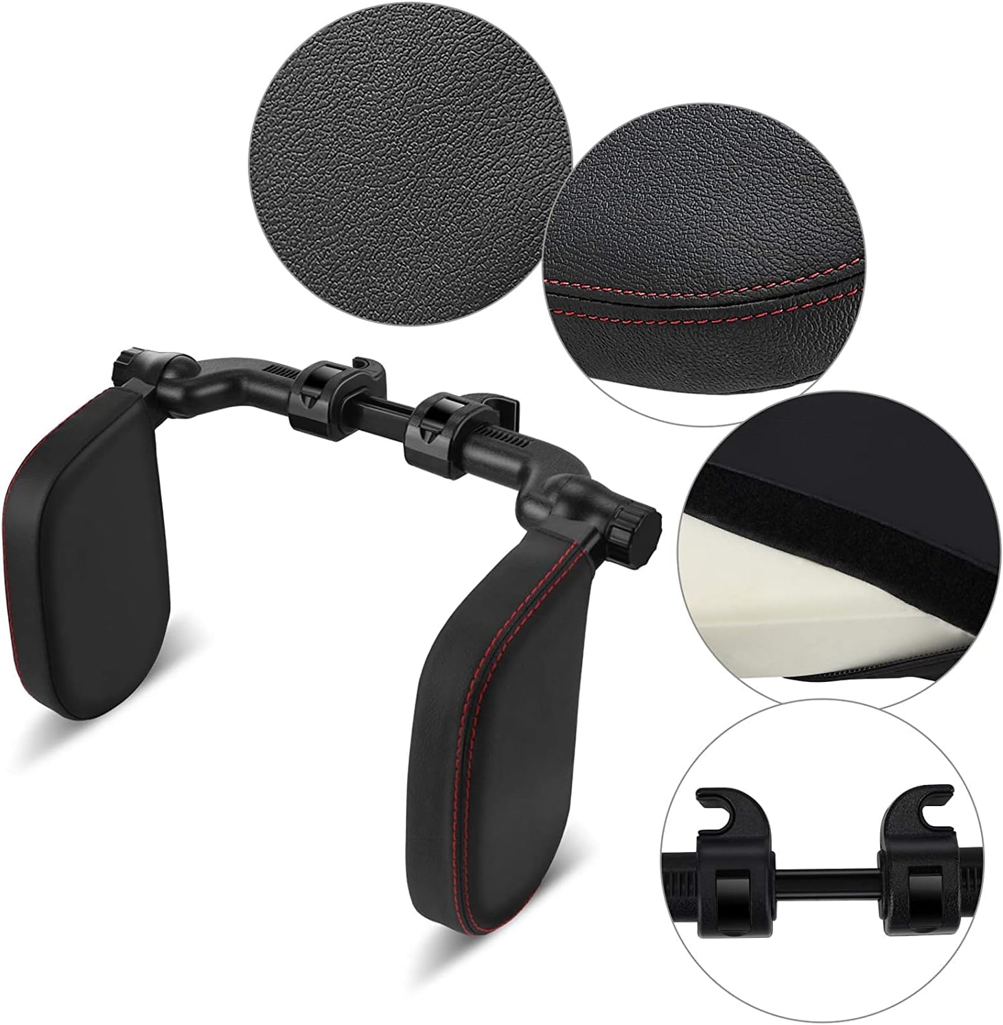 Easy arrangement: The headrest cushions are removable. First choose the appropriate rubber washer to attach to the car seat headrest bars. Then fix the retractable épaulement rod on the rubber washer. Finally, attach it to the headrest épaulement bars.