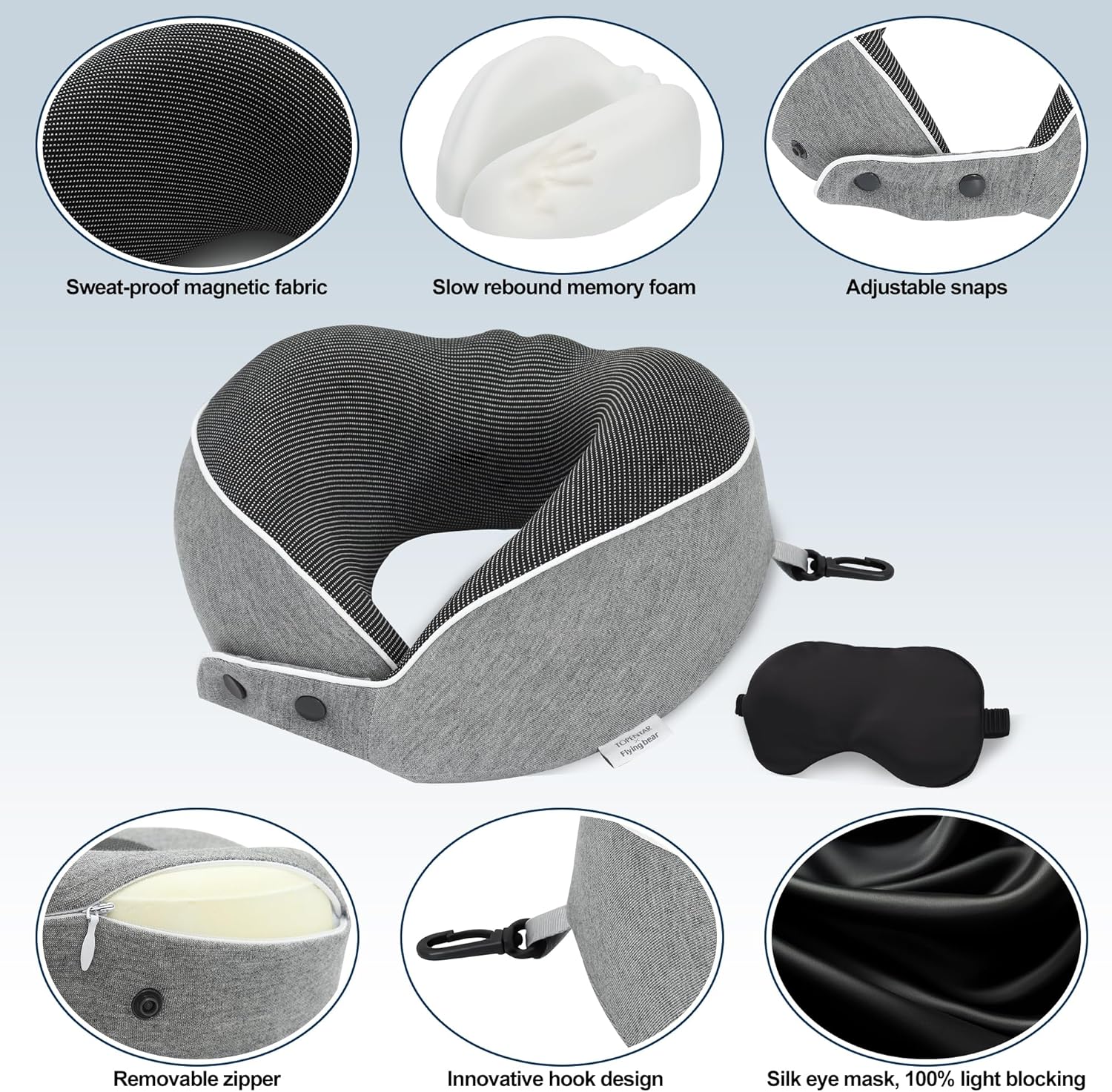 360° MEMORY FOAM SUPPORT: Airplane neck strap for airplane is made of high density breathable slow rebound memory foam. It hugs the neck curve perfectly, provides enveloping ossature, disperses pressure and relieves court adynamie on svelte journeys