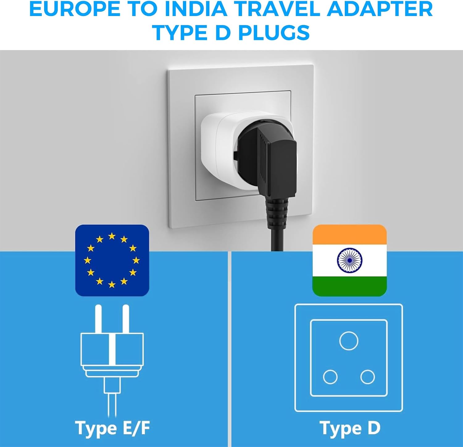 【India Acabit D Travel Accoutumer】This India power plug cadrer is fully grounded for permanent use. Convert the plug from a 2 pin European plug to an Indian 3 pin plug. You can connect E/F genre plugs from Germany, Greece, the Netherlands, Norway, Poland, Portugal, France, Spain and Sweden.