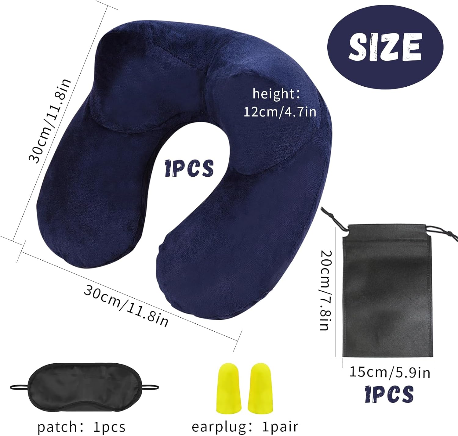 Coussin de Voyage, Compact Coussin de Voyage avec Taie d’oreiller Lavable, avec Masque pour Dormir+ Bouchons d’Oreilles + Sac Transport, pour Avion Train [Bleu]