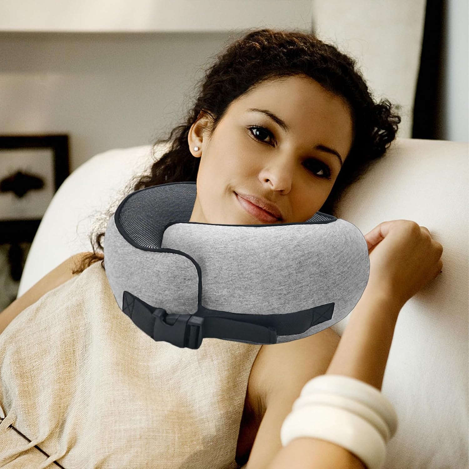 crazy bean Travel Pillow with Cervical Support Adjustable Memory Foam Neck Pillow, Ultra Light and Portable Ideal for Travelling, Resting at Home, Light Grey