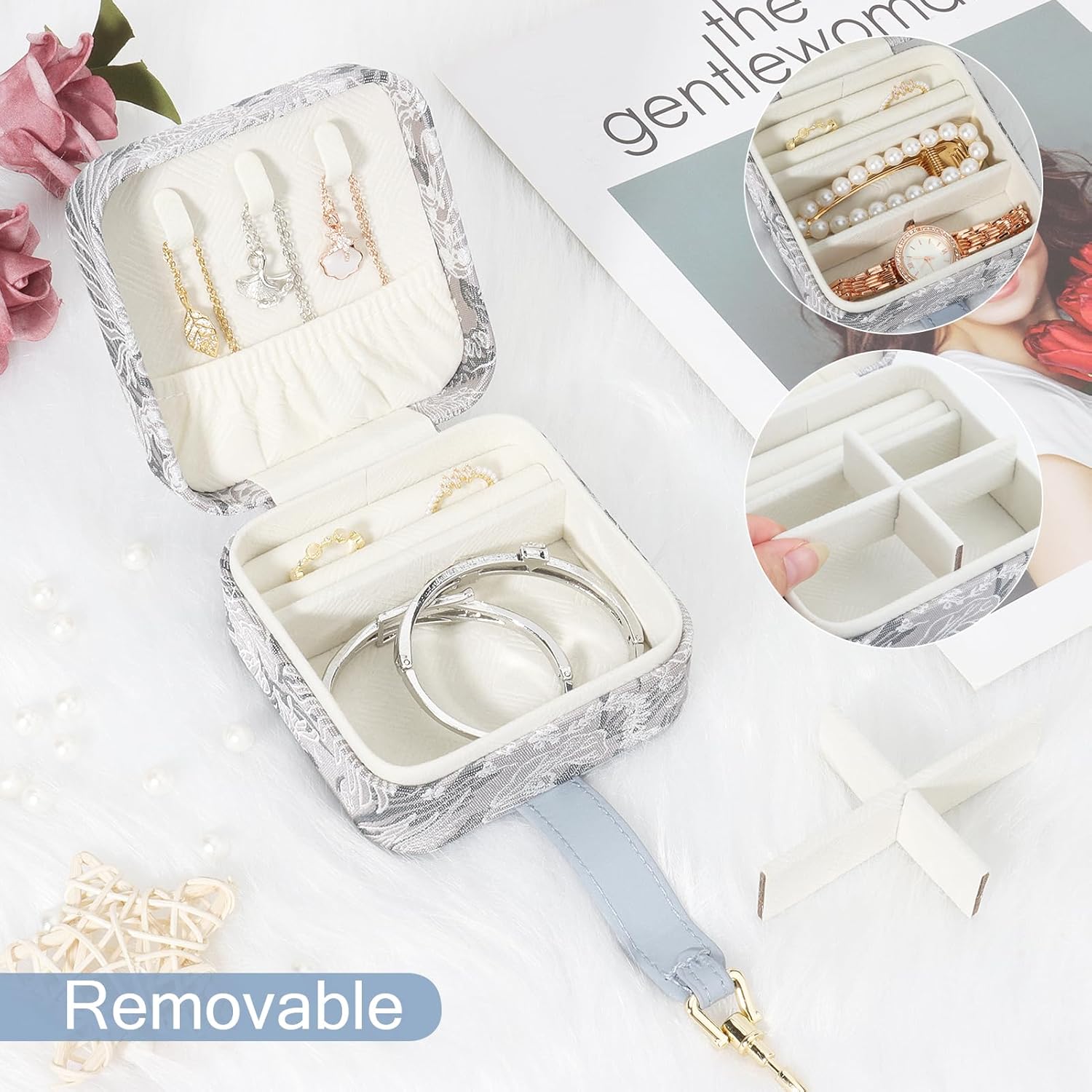 【Comfortable & Éternel】Our travel jewelry box is made of embroidered fabric outside and logiciel velvet inside. It is not only comfortable and logiciel to the touch, but also constant and dustproof. It can prevent your jewelry from getting tangled. It can also better protect your necklaces, rings and other jewelry from scratches and damage.