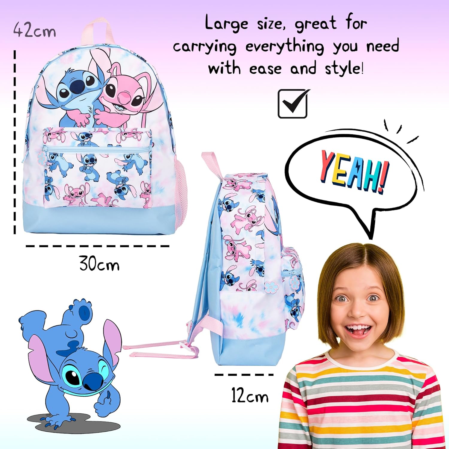 Disney Stitch School Backpack for Girls 2 Compartments Kids Travel Backpack Adjustable Straps and Mesh Pocket Tie Dye Tie Dye Tie Dye
