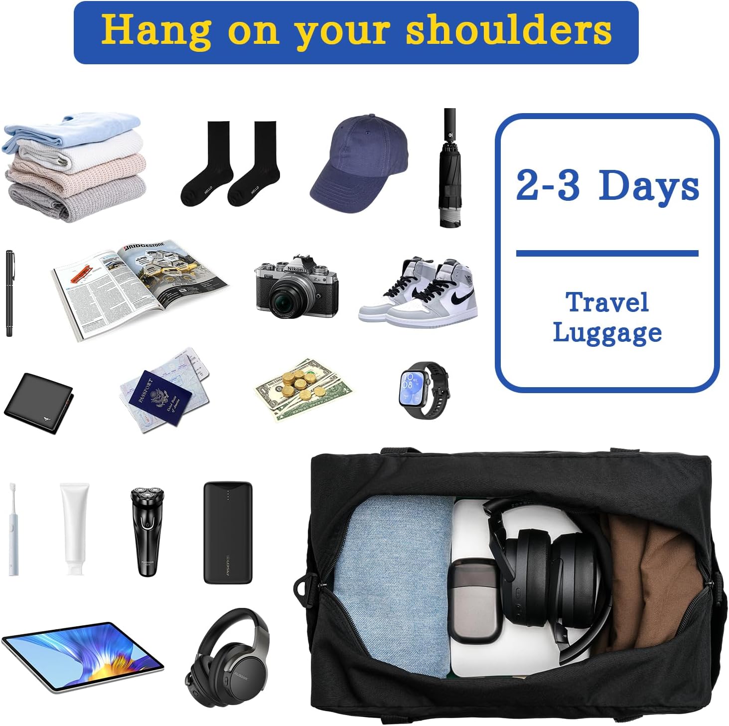 Dromzen Sac de Voyage, Homme Bagages Valise Cabine Avion Sacs, Femme Grand Sac Pliable Voyage Pliable, Bagage Cabine Weekend Travel Bag Imperméable für Ryanair Handgepäck Tasche (Noir)