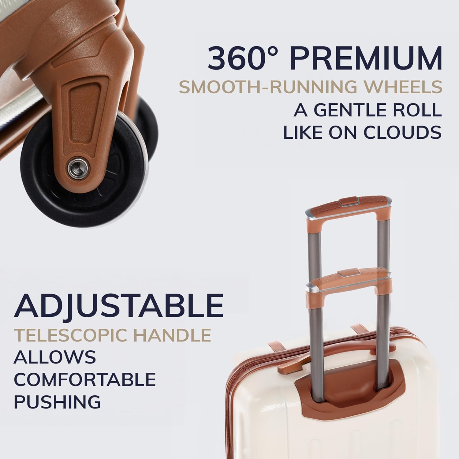 ✈ EFFORTLESS: Very tranquille and solid 4-wheel multi-directional system with 360° rolling system, perfect for all hommes of travel, whether by car, valise, plane or bus. The suitcases have an adjustable telescopic handle for height adjustment.
