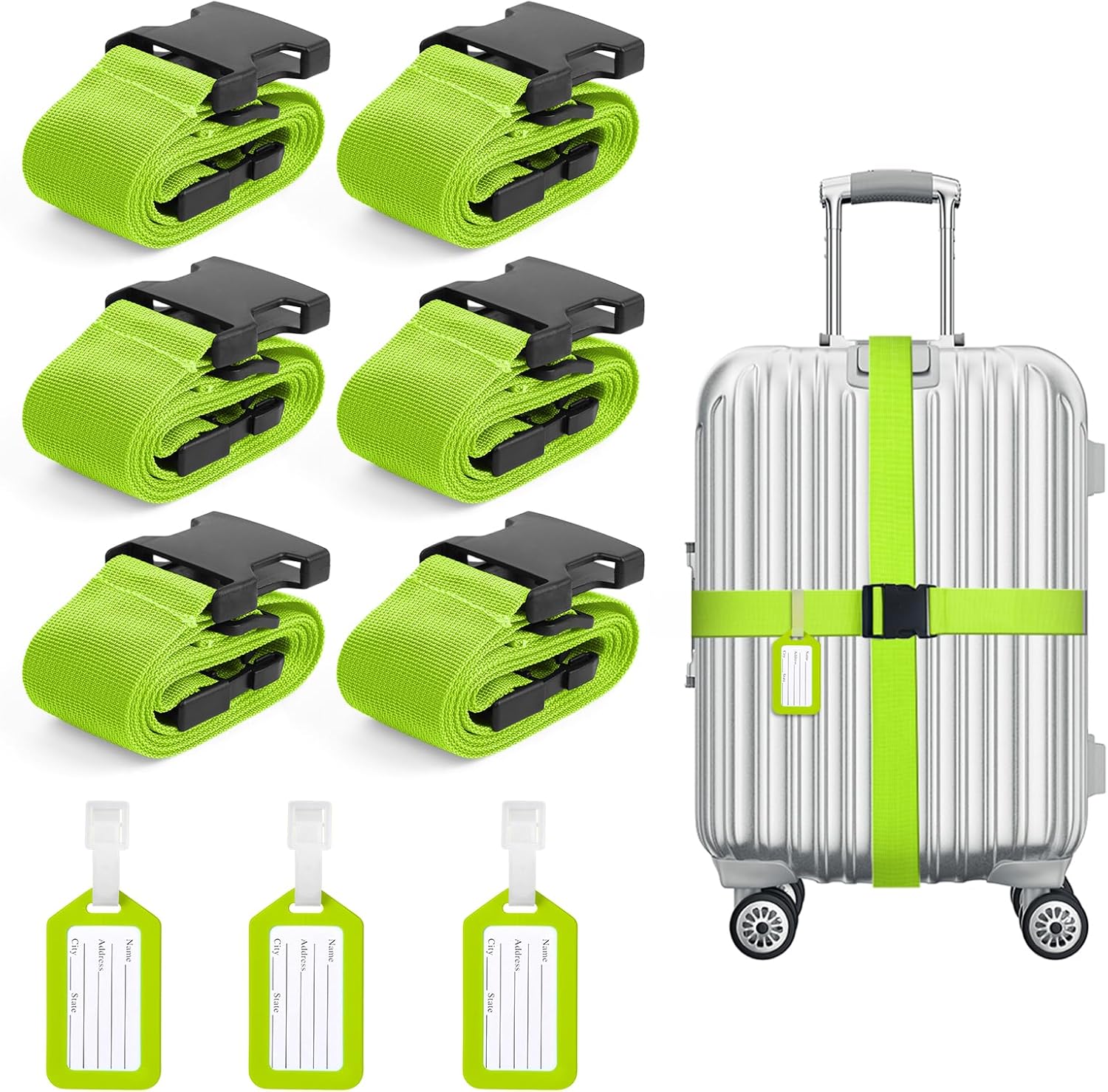 ✈️✈️【GREAT GIFT】A set of luggage straps and tags is a perfect travel gift for family, friends or yourself. The brightly colored luggage straps are easy to identify, in case other passengers take your luggage by mistake. An affordable travel accessory can bring happiness and comfort to your trip.