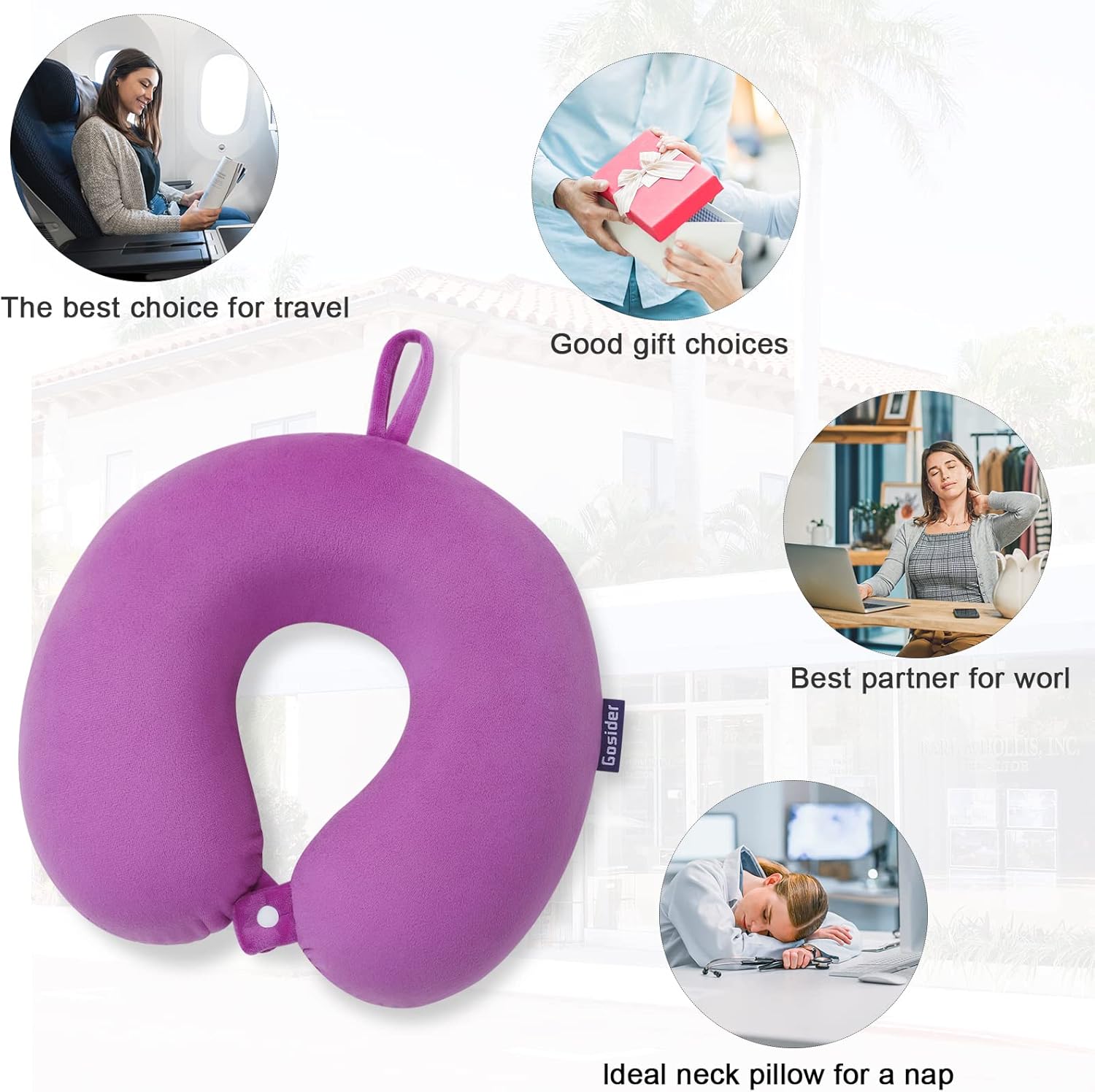Gosider Purple Travel Pillow U Shaped Neck and Head Pillow Comfortable Memory Foam Pillow for Airplanes Trains Self-Driving Cars