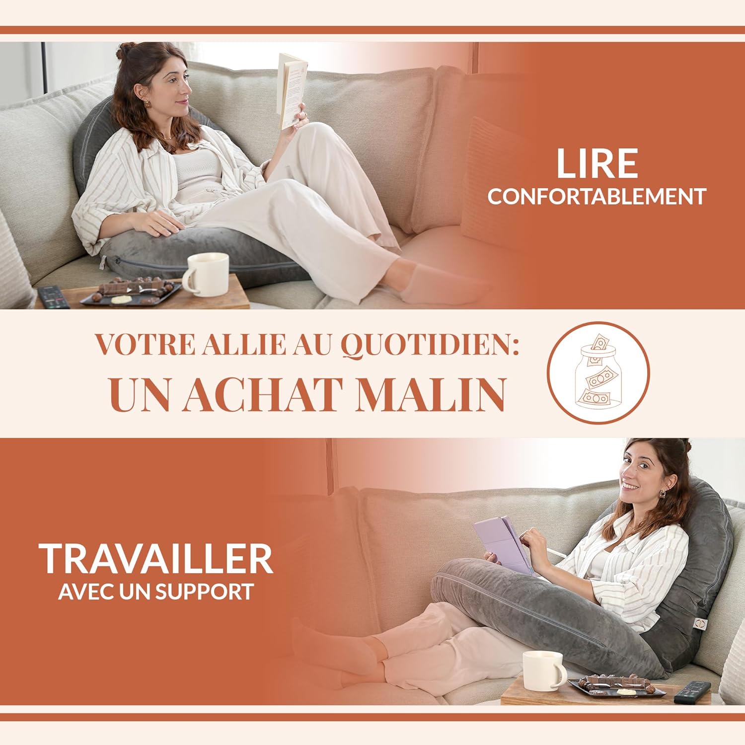 Ergonomic esthétique suitable for all bonshommes of morphology: With its dimensions of 110 cm x 78 cm, this reading cushion has been designed to suit different caraco bonshommes. The upper bouchée of the cushion easily adjusts to suit different back widths. Designed for readers, teleworkers, pregnant women or those in recovery, this ergonomic pillow offers targeted comfort, even in chronic beignet.