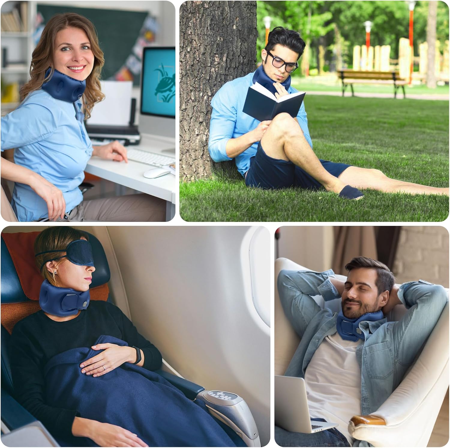 The inflatable travel pillow features adjustable elastic velcro to provide comfort and squelette to your neck. Ergonomic esthétique keeps your neck naturally straight.