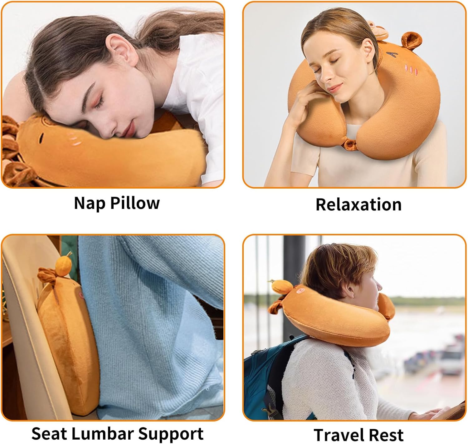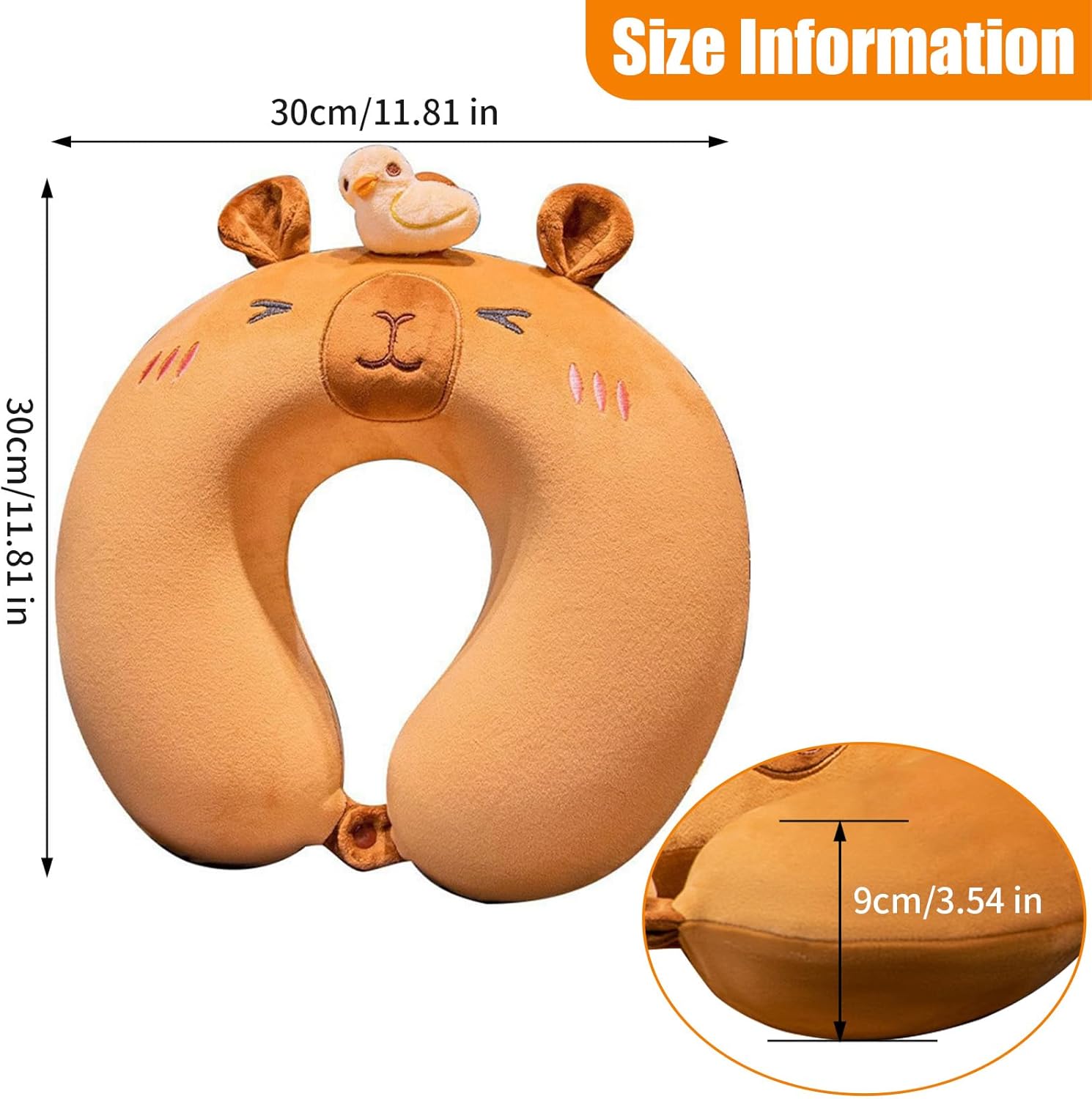 Oreiller Animaux Dessin Animé Mignon Enfants, Coussin Voyage Portable Mousse Mémoire, Oreiller Soutien Cervical Forme U Doux Ultra, Oreiller Cou pour Voiture,Avion, Bureau, Maison(Canard et Capybara)
