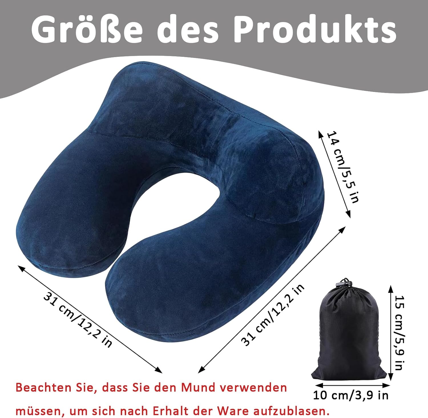 Oreiller de Voyage Gonflable, Oreiller de Voyage Gonflable avec Double Vanne, Taie d’oreiller Lavable, avec Masque pour Dormir, Bouchons d’Oreilles, Sac Transport, pour Avion et Train, Bleu Marine