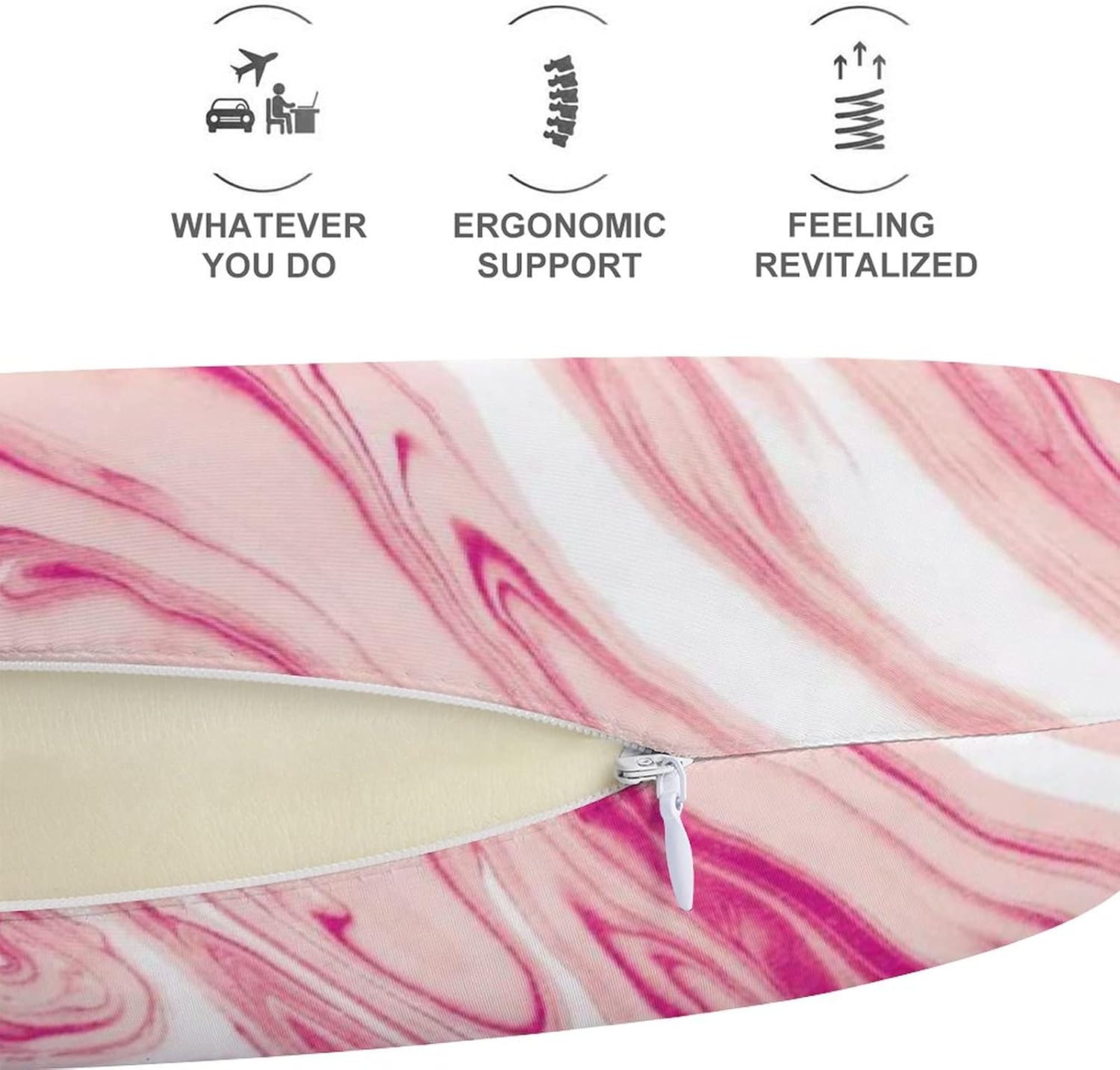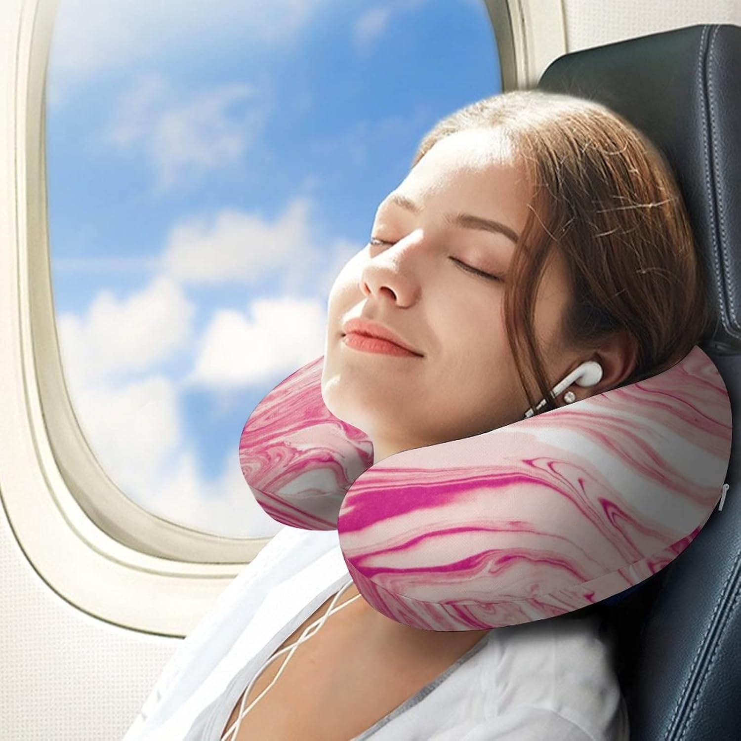 Oreillers de voyage uniques compatibles avec la texture du marbre rose pour avions, voiture, vol, coussin confortable pour le menton/la tête/le cou, petits oreillers en U pour l’extérieur, le bureau e